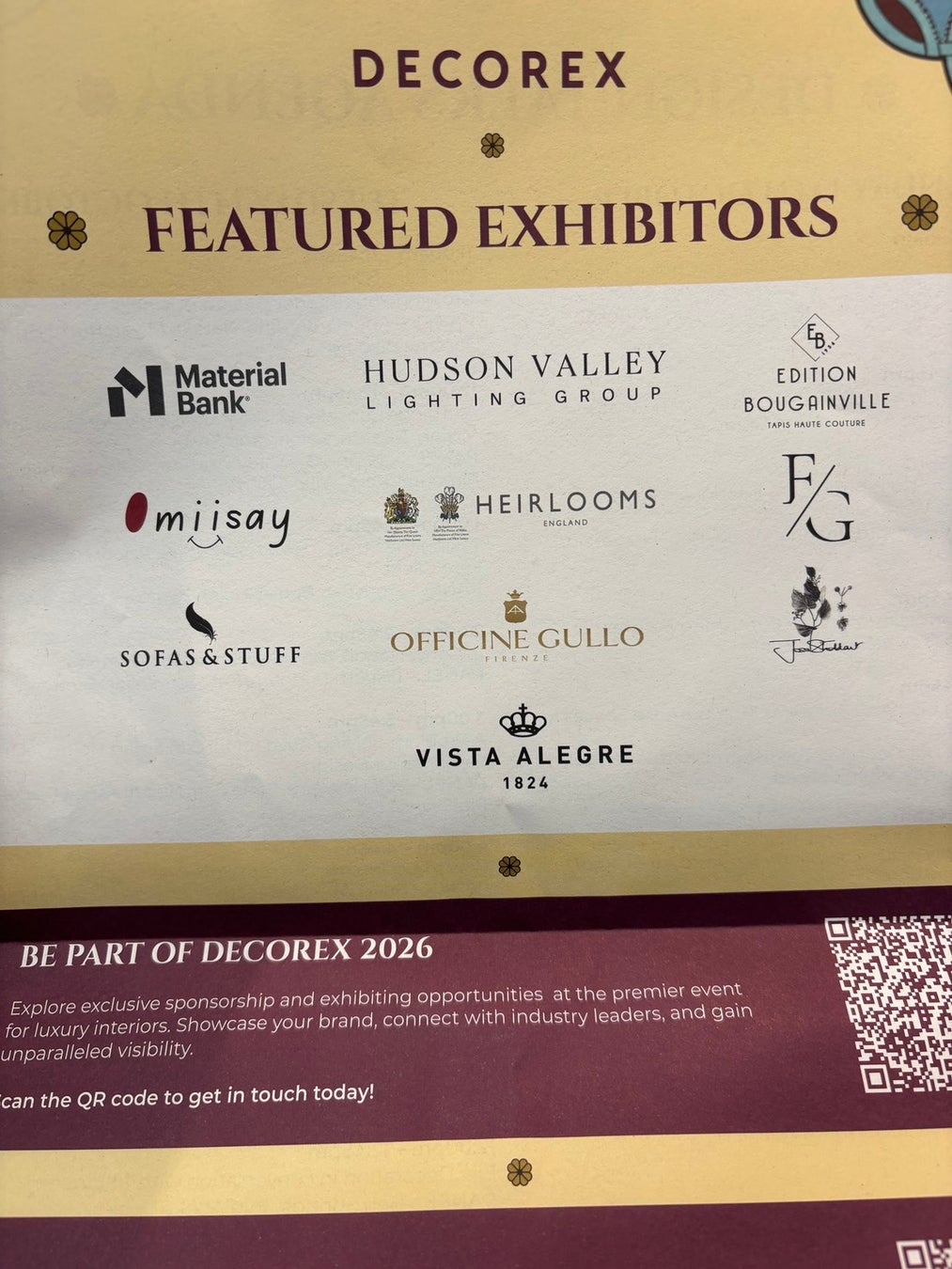 Founded in 1978, Decorex London is the United Kingdom’s leading luxury interior design exhibition, bringing together architects, designers, and buyers who shape Europe’s high-end interiors market.