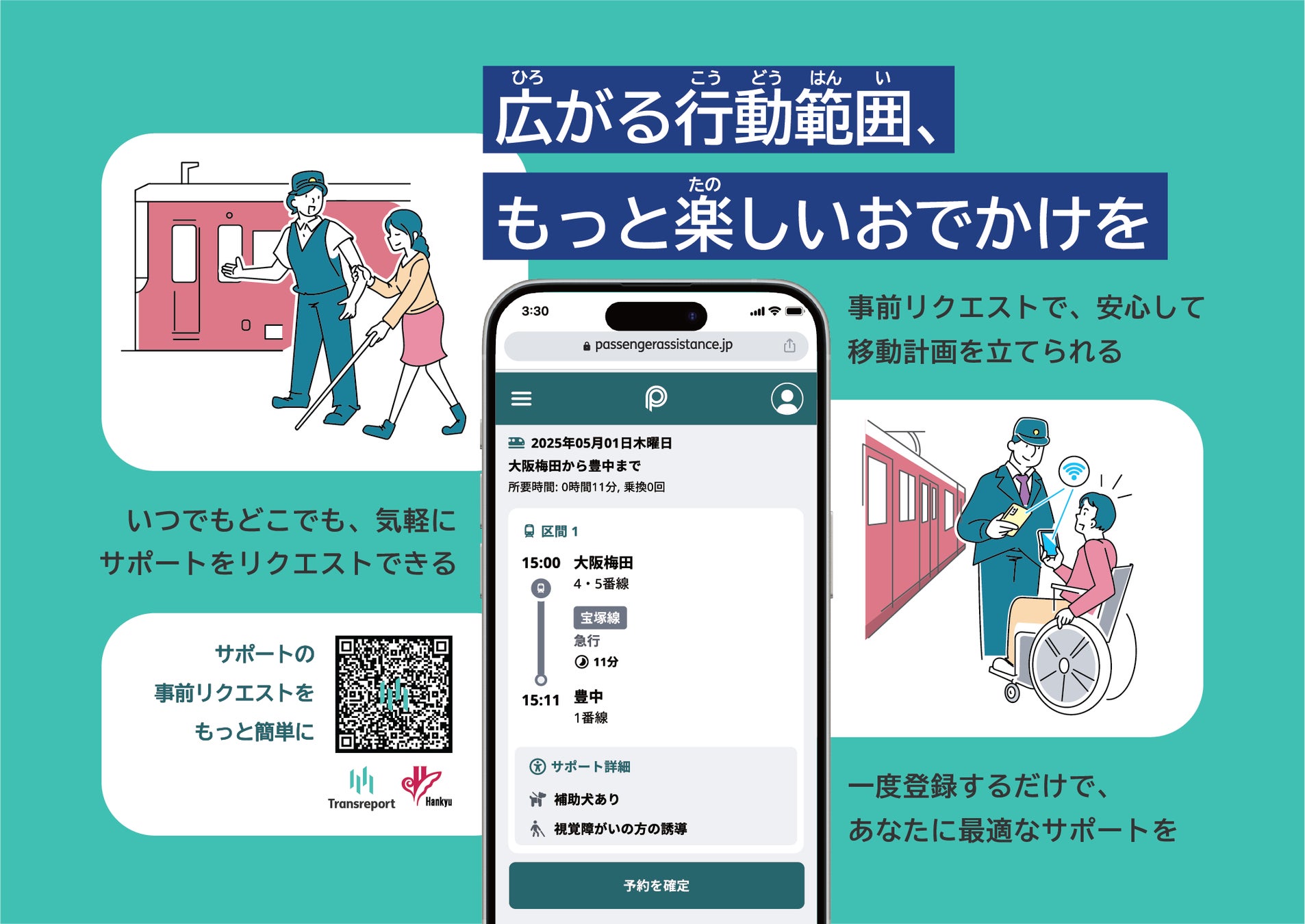 移動のバリアフリー化を目指すTransreport LimitedおよびTransreport Japan株式会社(以下、Transreport)は、阪急電鉄株式会社(以下、阪急電鉄)とのパートナーシップを通じて、2025年春頃より介助(サポート)をリクエストできるWebアプリケーション(以下、本プラットフォーム)の提供を開始します。