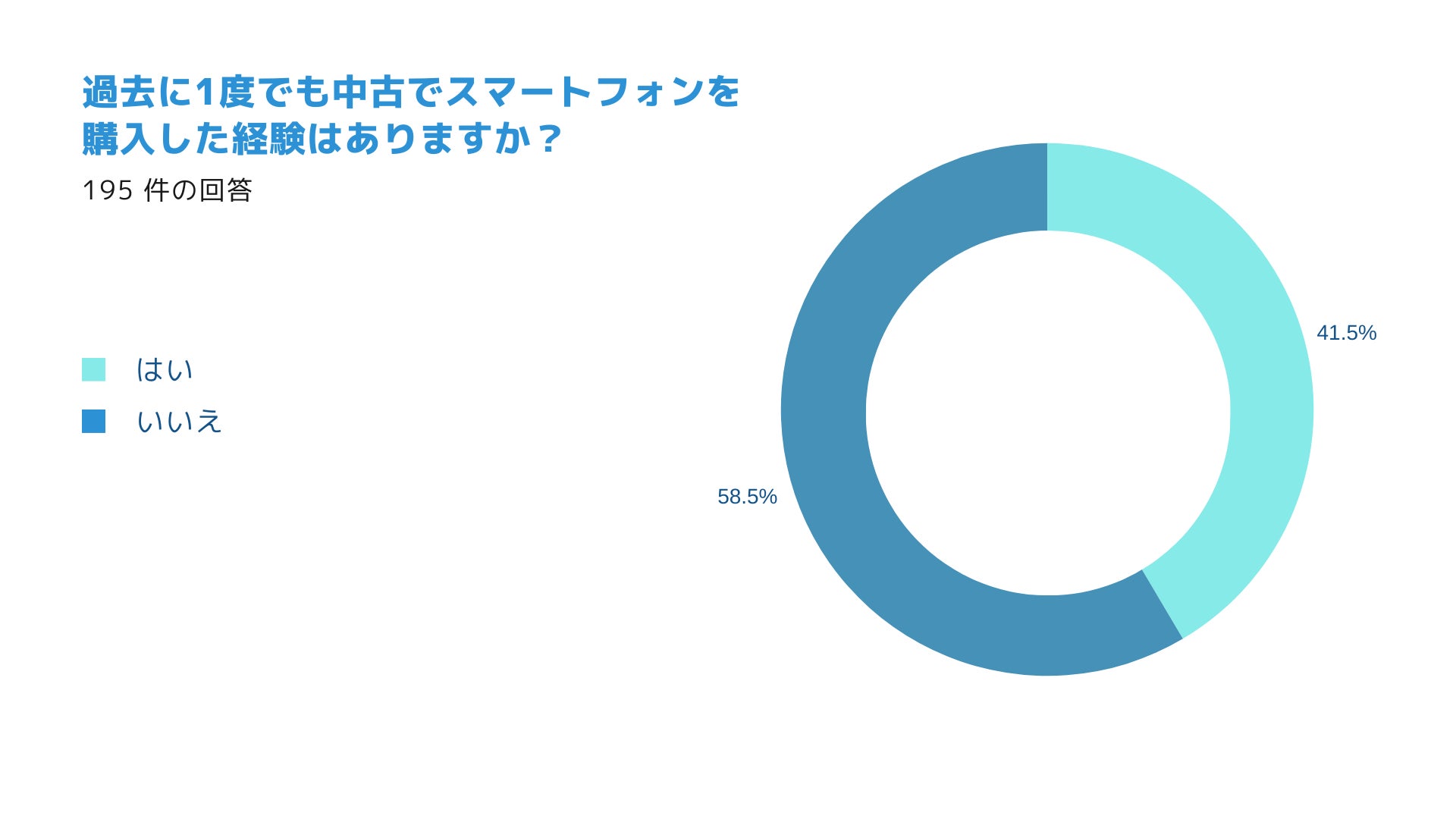 中古スマホを購入したことがある人は81人(41.5%)、購入したことがない人は114人(58.5%)と半数以上となりました。