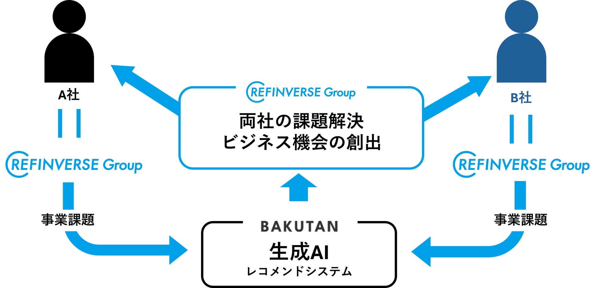 BAKUTAN株式会社(本社:東京都世田谷区、代表取締役CEO:小森谷周大、以下「BAKUTAN」)と、株式会社リファインバースグループ(本社:東京都千代田区、代表取締役社長:越智晶、以下「リファインバースグループ」)は、リファインバースグループがこれまでに構築してきたサステナビリティ担当者ネットワークにおいて、AIアルゴリズムを基盤とした社内におけるビジネスマッチング提案および生成AI技術を活用した商談内容のレコメンドシステムの導入に関する実証実験を開始しました。