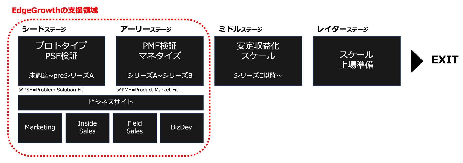 当該事項を踏まえ、エッジグロースとしてはスタートアップの「事業」にフォーカスし、迅速な事業成長/市場展開の一助になるべく、サービスを通じて貢献していきたいと考えております。