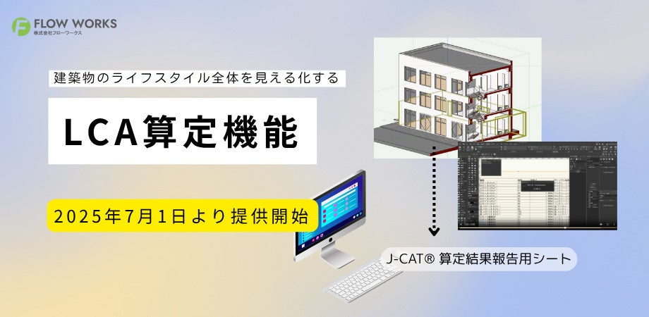 「BIMを誰もが簡単に」をビジョンに掲げ、BIMの普及と活用支援を行う株式会社フローワークス(愛知県名古屋市、代表取締役:横関 浩)は、2025年7月1日(火)より、建築物の設計段階から運用・解体に至るまでの環境負荷を数値化するLCA(Life Cycle Assessment)計算機能を、現行のBIM標準テンプレートのオプションとして提供開始いたします。本機能は、国土交通省による建築DX/GX補助金の対象事業となるもので、BIM導入によるLCA計算への対応を支援します。