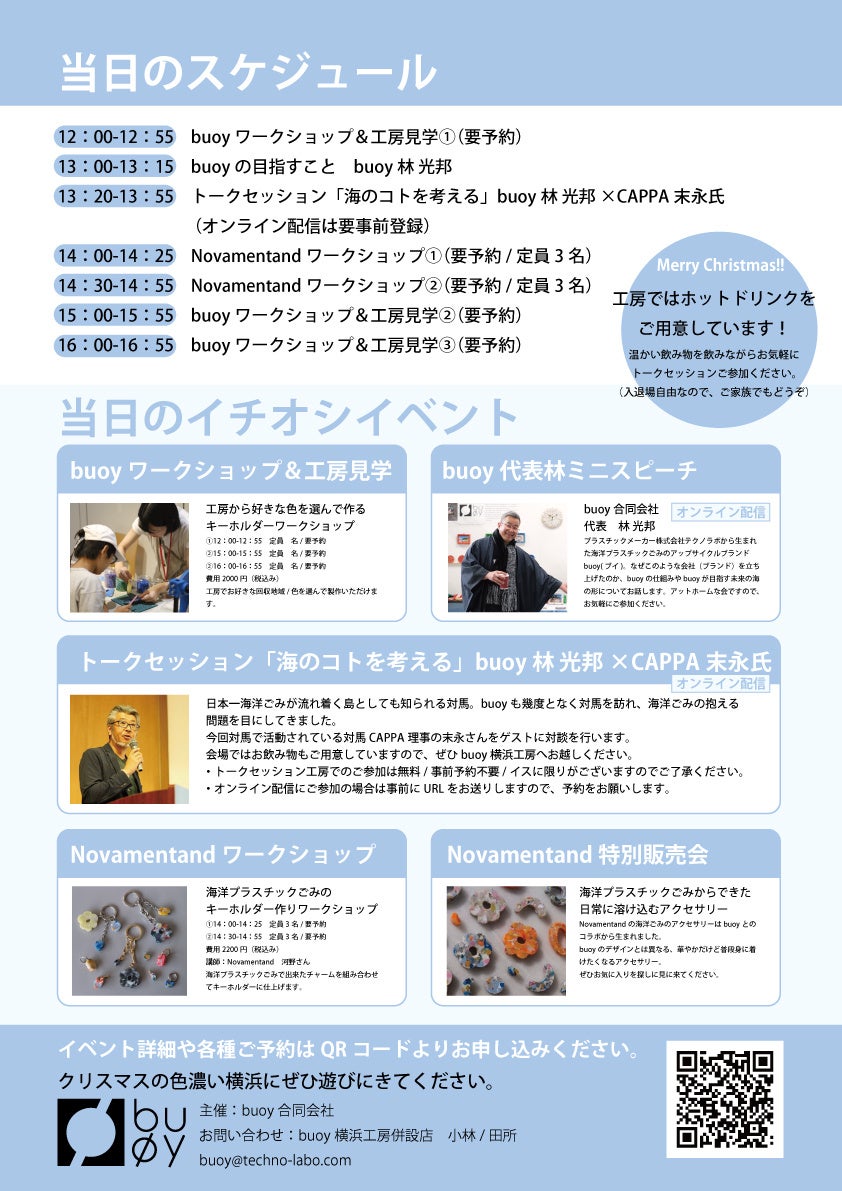 内容:buoyワークショップ&工房見学/buoy店舗での商品販売