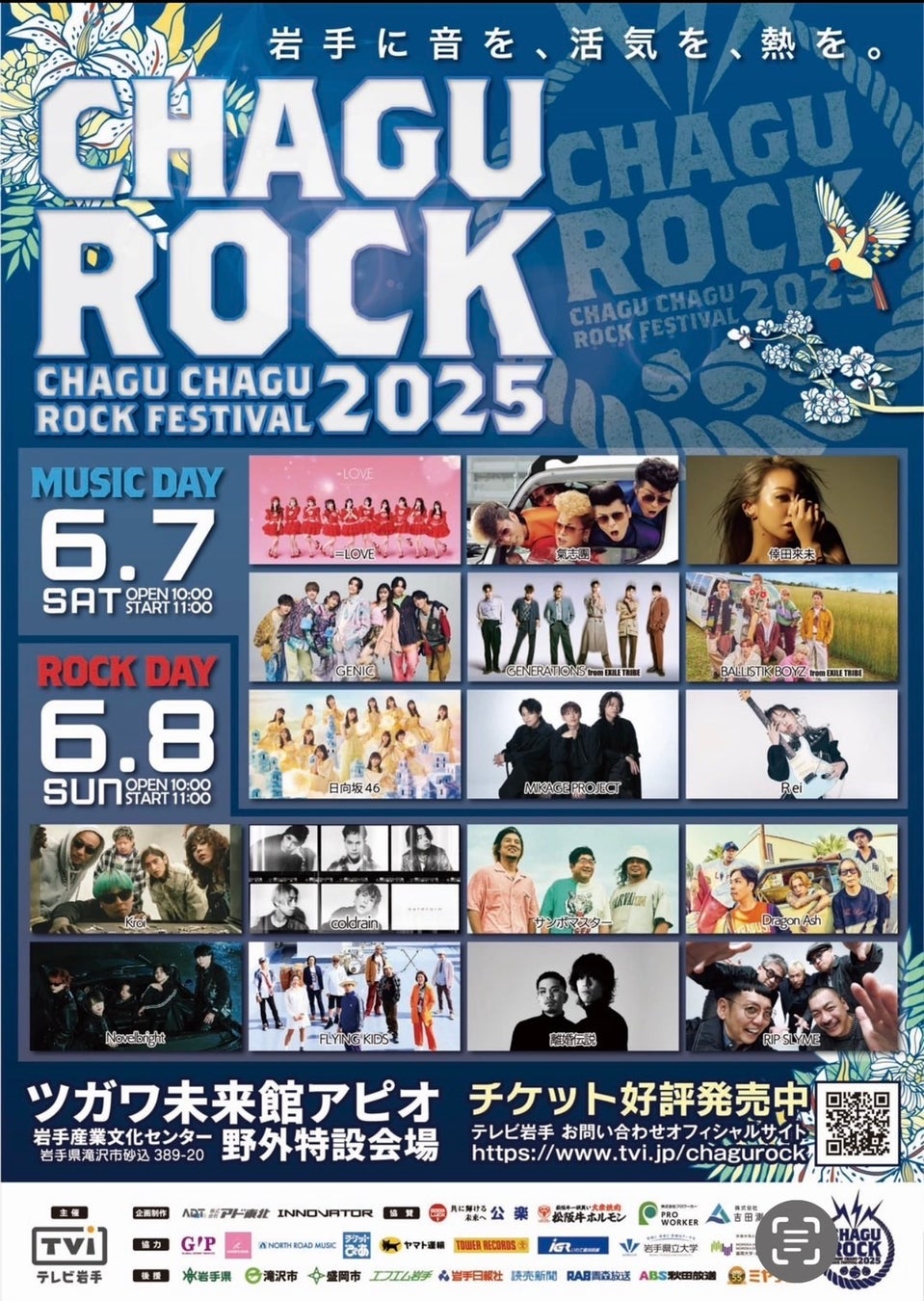 「CHAGU CHAGU ROCK FESTIVAL 2025(通称:チャグロック)」は、雄大な岩手山を望む岩手県滝沢市で誕生する新しい野外音楽フェスティバルです。2025年6月7日(土)・8日(日)の2日間、ツガワ未来館アピオ 岩手産業文化センター 野外特設会場にて開催されます。「チャグチャグ馬コ」のように、長く人々に愛される音楽フェスティバルを目指し、若者の活力となる最高の瞬間を創出します。未来のために、もっと魅力的で活気あふれる岩手を創るという想いが込められています。