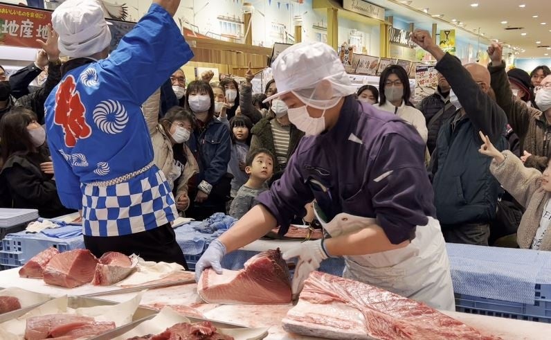 山口県を中心にスーパーマーケットを展開する株式会社丸久(本社:山口県防府市江泊1936 代表取締役:田中康男)のアルク小郡店では、毎月1回の特別なイベントとして「マグロ解体ショー」を実施しております。