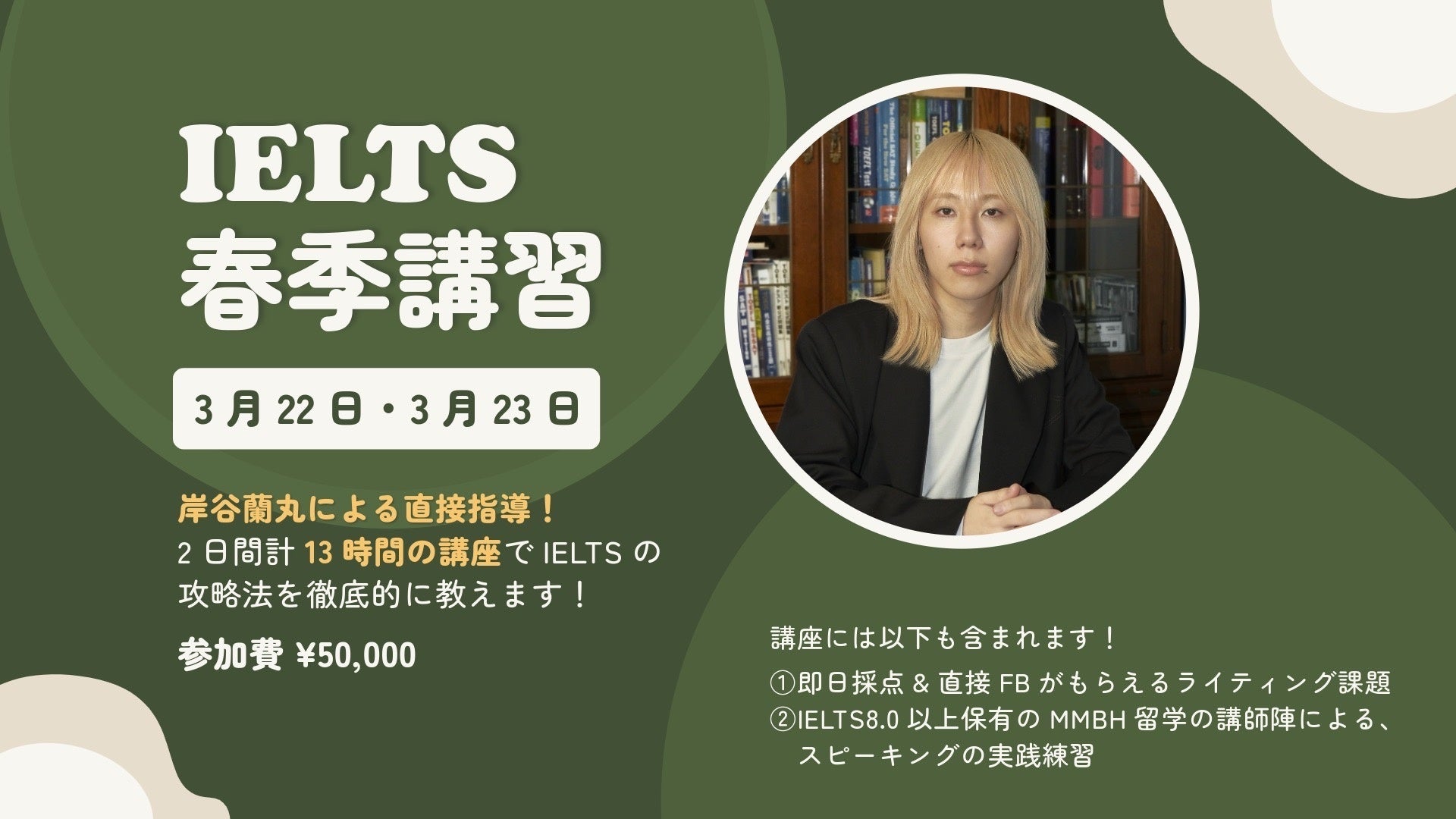 岸谷蘭丸が代表を務めるMMBH留学が、IELTS春季講習を開催