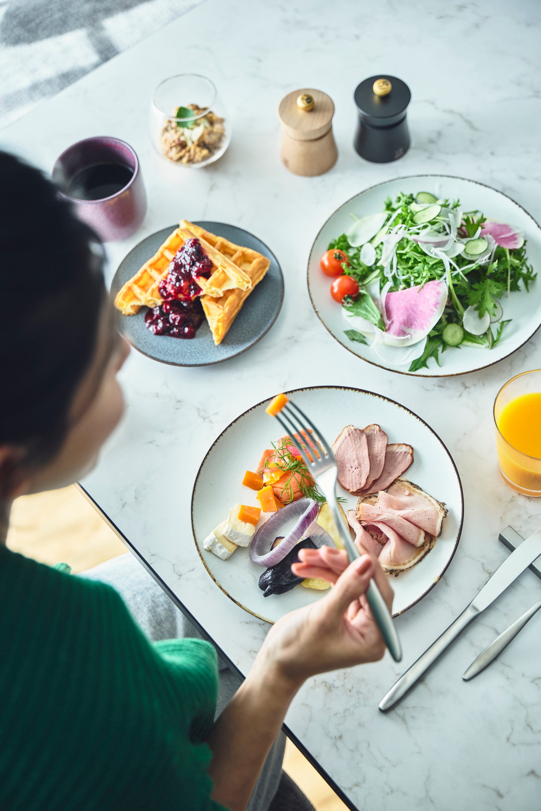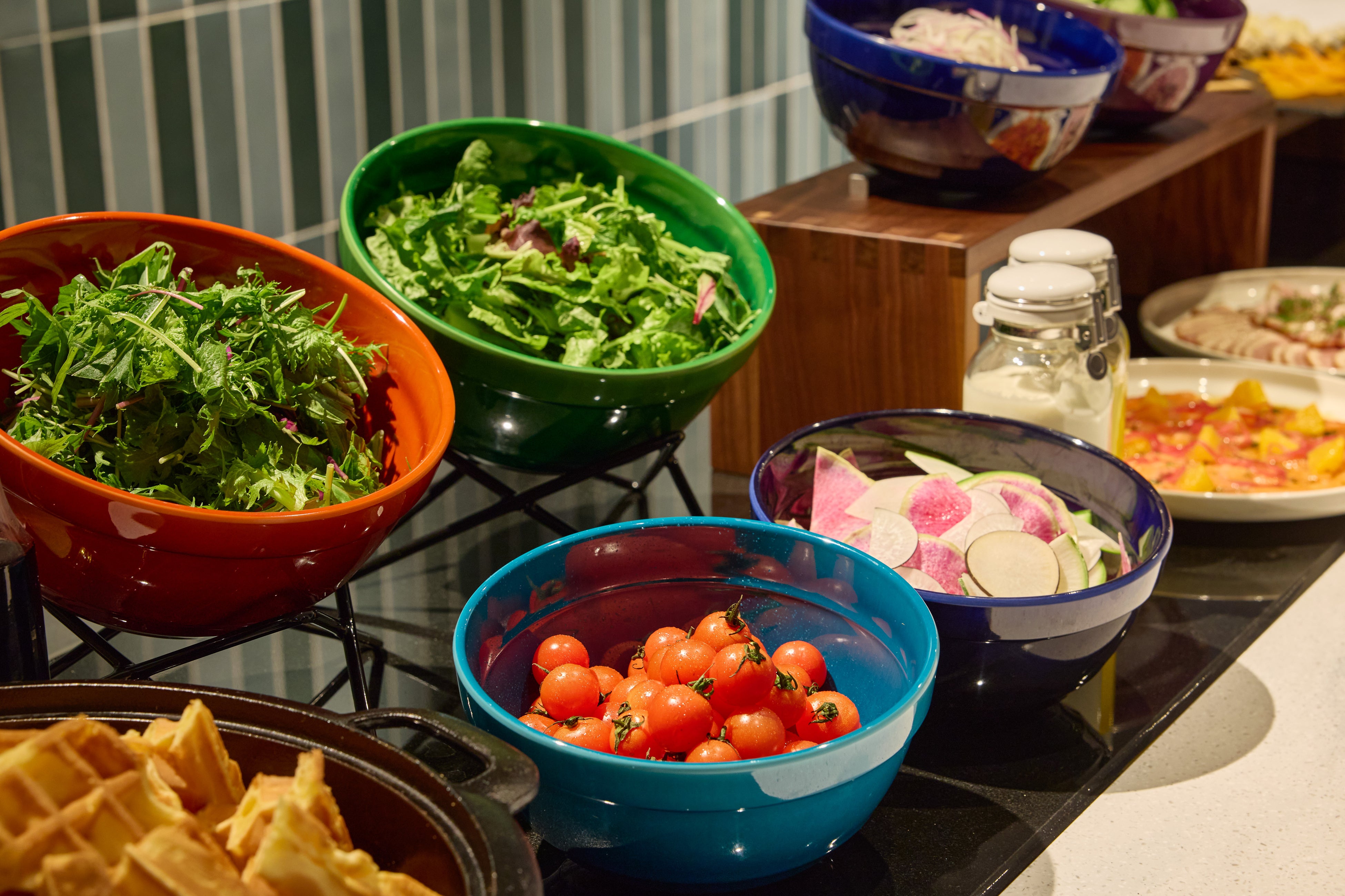 2階の朝食会場である「 BONDO 」は、温もりのあるモダンな空間で、バラエティ豊かな朝食ビュッフェを心ゆくまでお楽しみいただけます。京野菜を使用したおばんざいをはじめとするメニューが、まるでお盆の上のアートのように彩りを添え、京都ならではの味覚を堪能いただけます。フレンドリーで親しみやすいサービスとともに、京都の文化と歴史のエッセンスを感じる特別なひとときをご提供します。