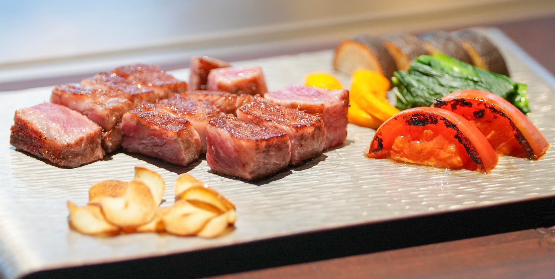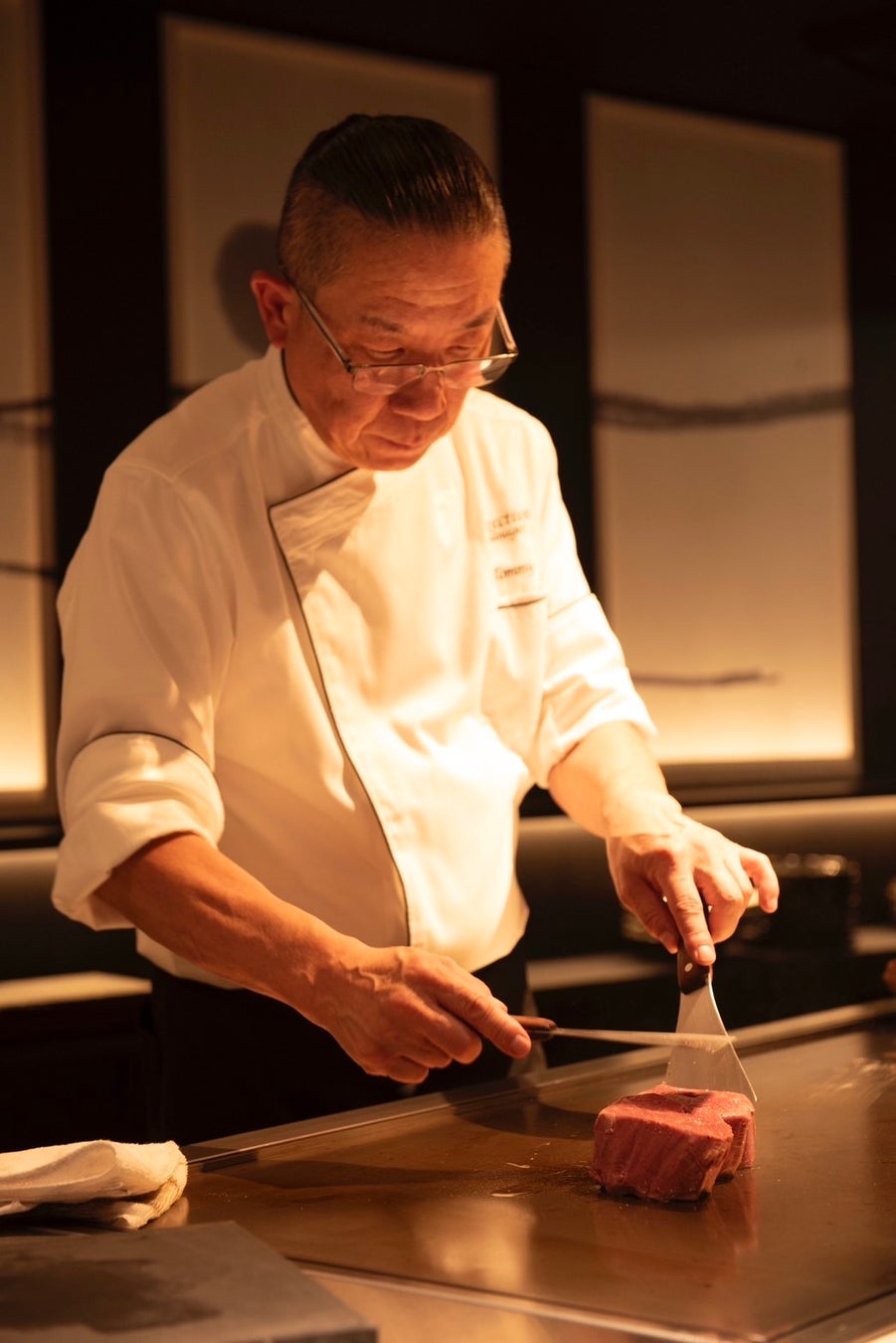当店のエグゼクティブマネージャーであり、鉄板焼き職人としてのキャリアを積み重ねてきた富川裕治は、銀座、香港、マレーシアでの経験を経て、多様なリクエストに応える料理の追求を続けています。「生涯一鉄板焼き職人」として、本物の和牛体験をお届けします。