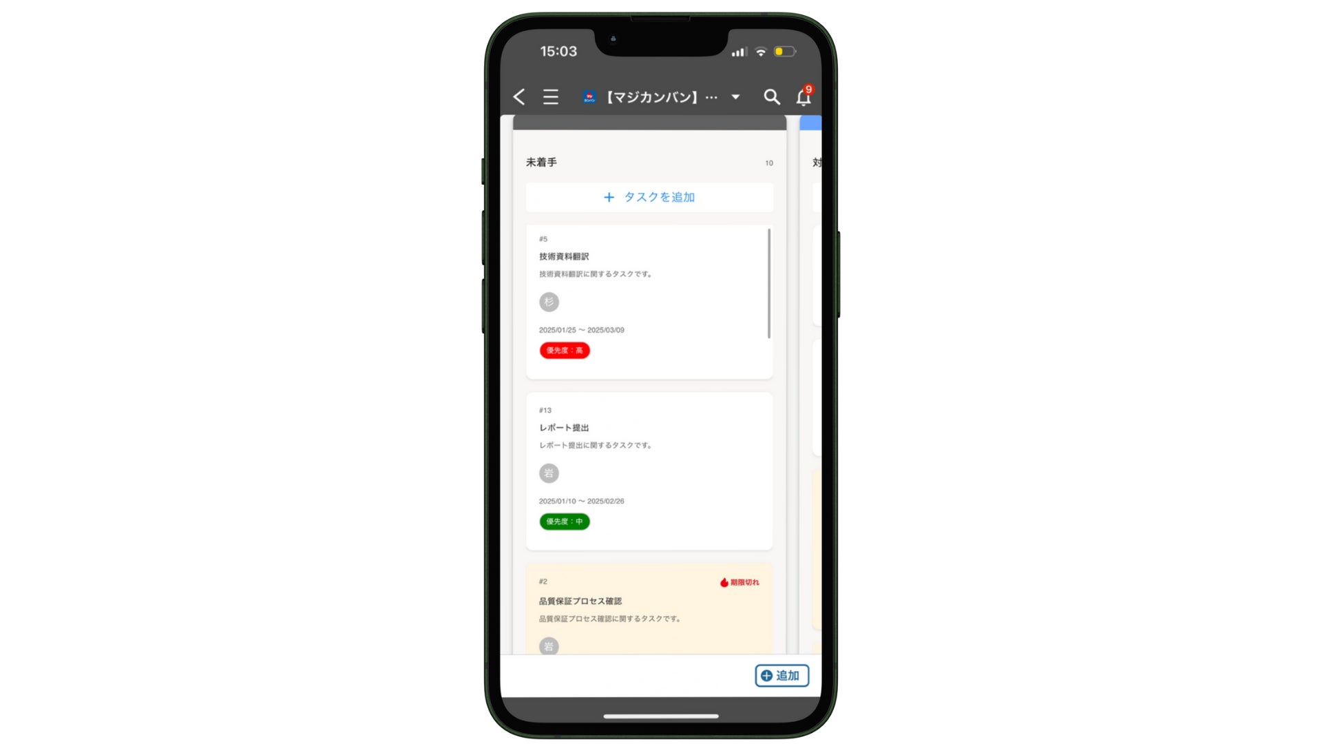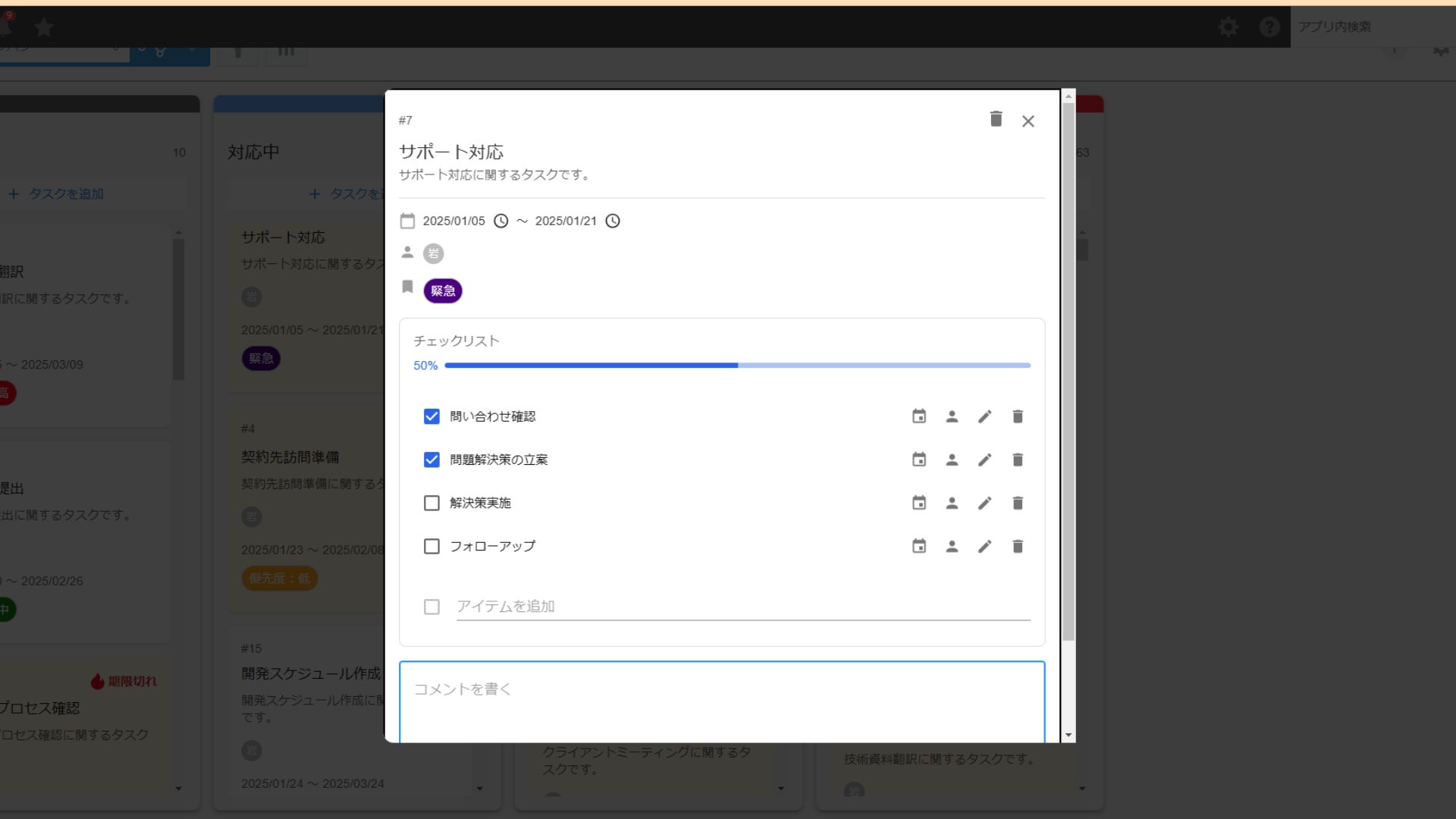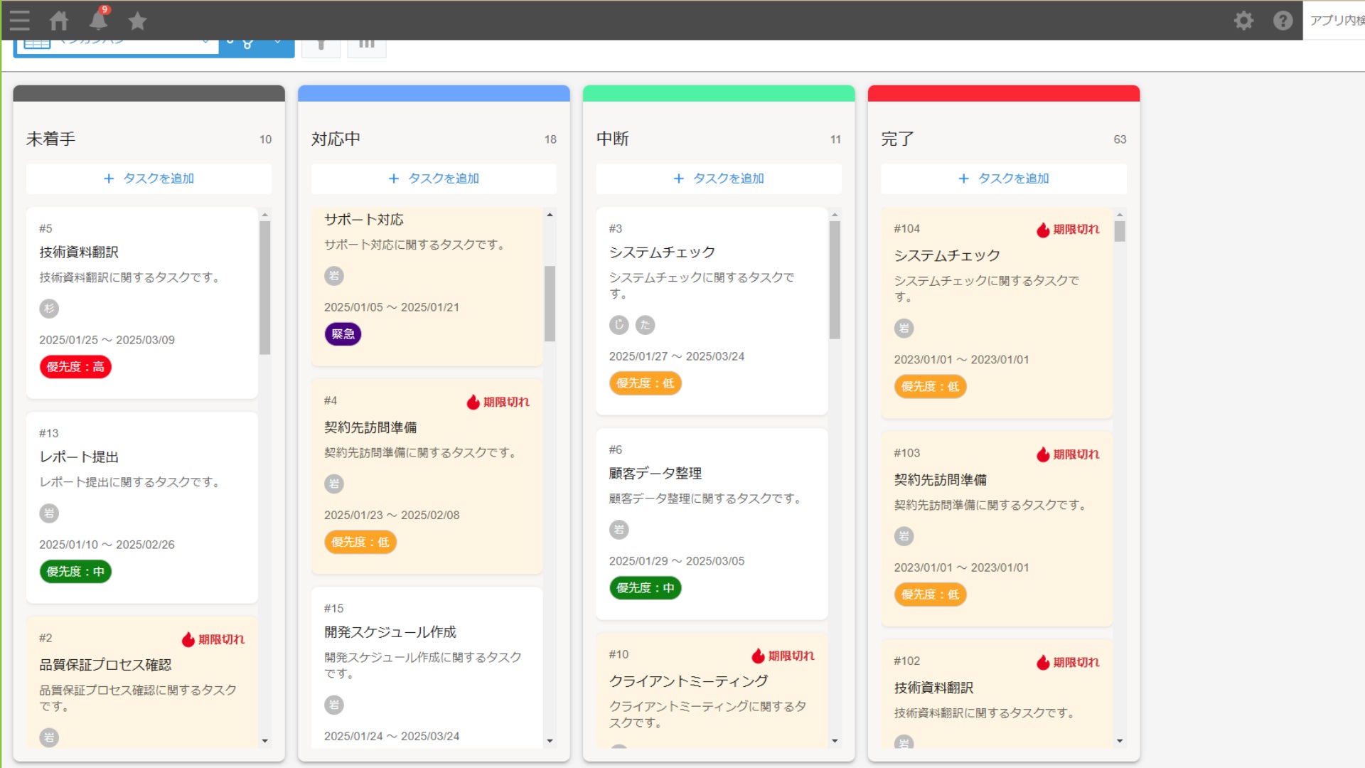 カンバン方式でタスク管理をドラッグ&ドロップで簡単に管理できます。