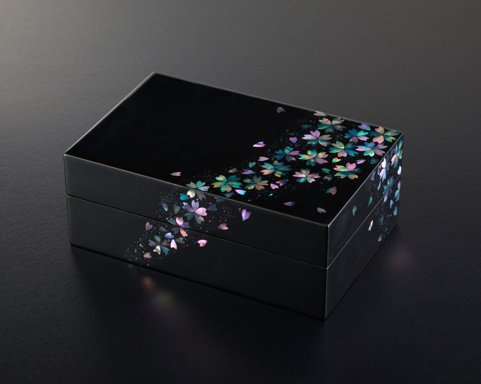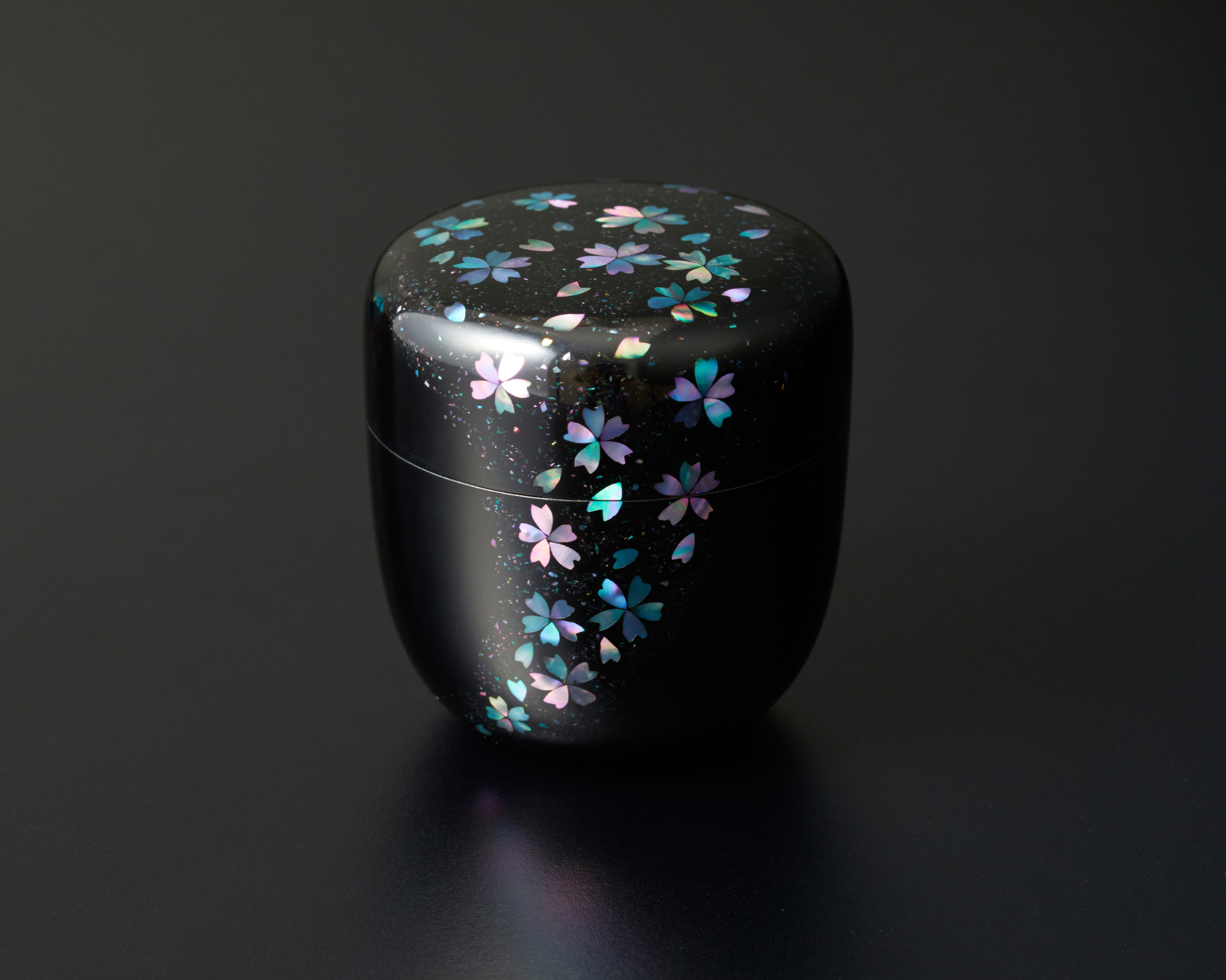 螺鈿に使用している貝は、岩手でしかとれない、今では貴重とされる大きな美しいピンク色の三陸産のアワビ貝を使用し、夜光貝や色鮮やか貝も使用しています。漆は貴重とされる日本産漆の中でも、特に質の高いことで知られる岩手県産の浄法寺漆のみを使って、何度も塗っては研ぎだす工程を繰り返します。そうして完成した螺鈿の作品は、浄法寺漆のつやと輝きと、三陸産アワビ貝を中心とするや繊細な色合いの貝の表情で息をのむ美しさです。