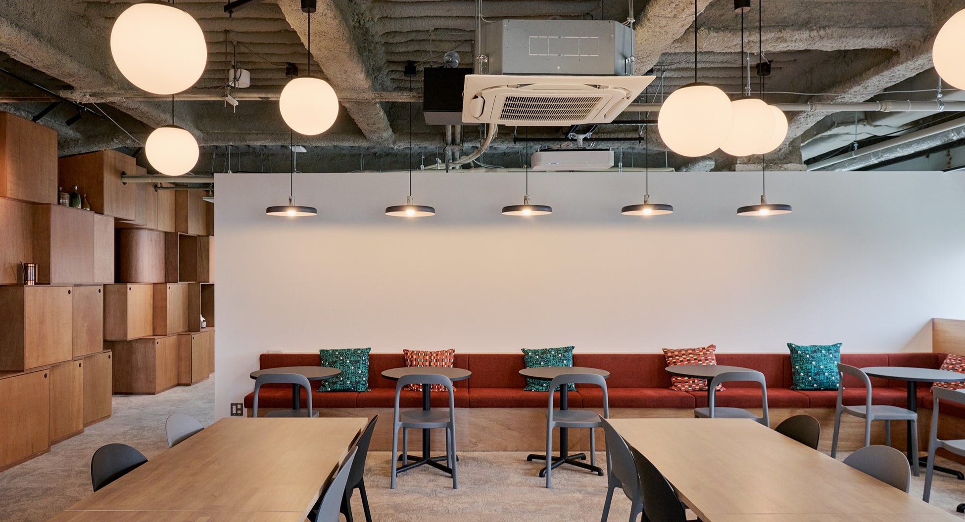 執務スペースには創作のタブローとなる、ゆったりとしたロングデスクを計画。フリーアドレス空間としてスタッフの多様な働き方やコミュニケーションを促します。また、執務スペースとゆるやかに分節されたミーティングエリアや代々木体育館を一望できるブレイクエリアなど、さまざまなスペースを計画しています。