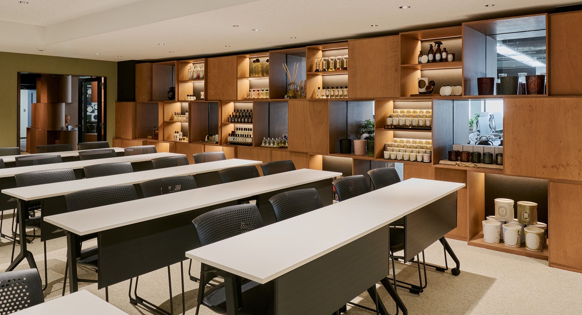 パリ発フレグランス・メゾン Diptyque(ディプティック)は、日本法人ヘッドオフィスを刷新。近年、企業においてオフィスを単なる業務空間ではなく、ブランド価値や創造性を体現する場として再定義する動きが広がっています。Diptyqueは「香り」を通じて独自の世界観を表現してきました。本プロジェクトではその思想を拡張し、働く場そのものをブランドの空間資本として再構築しました。また、これまで重視してきたサステナブルな思想を投影した試みとなっています。設計を一級建築士事務所㈱アトリエMEME(東京)が担当しました。