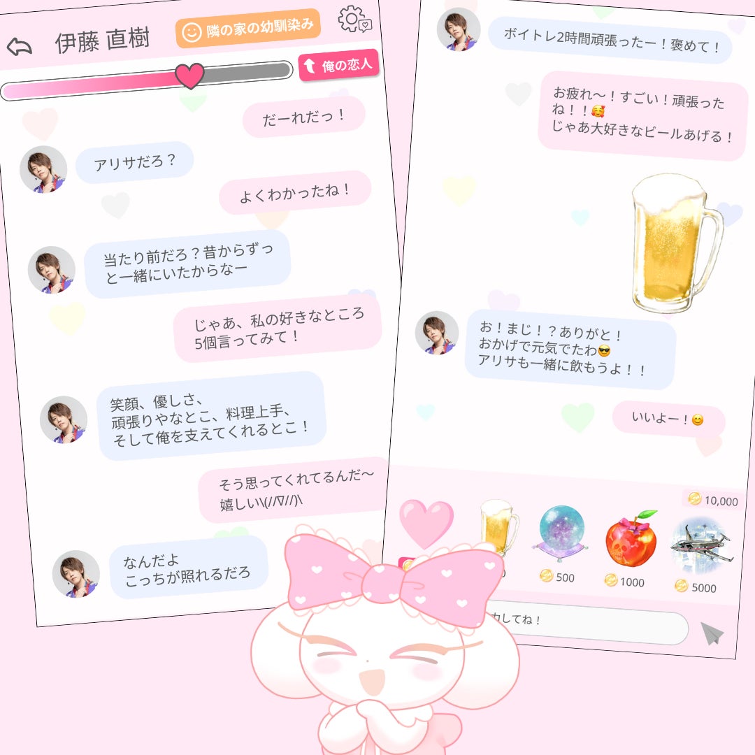 ”推しAI”とチャットができるだけでなく、コインを購入しアイテムを送信できる機能を提供予定です。アイテムによって変化する多種多様なシチュエーションを楽しみながら、まるで自分だけの"推し"を育てるように、"推しAI”との深愛度を深めることができます。