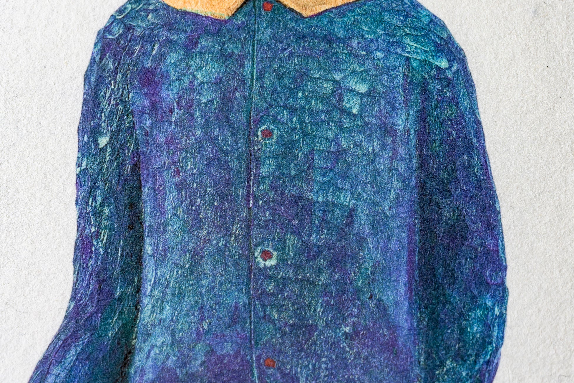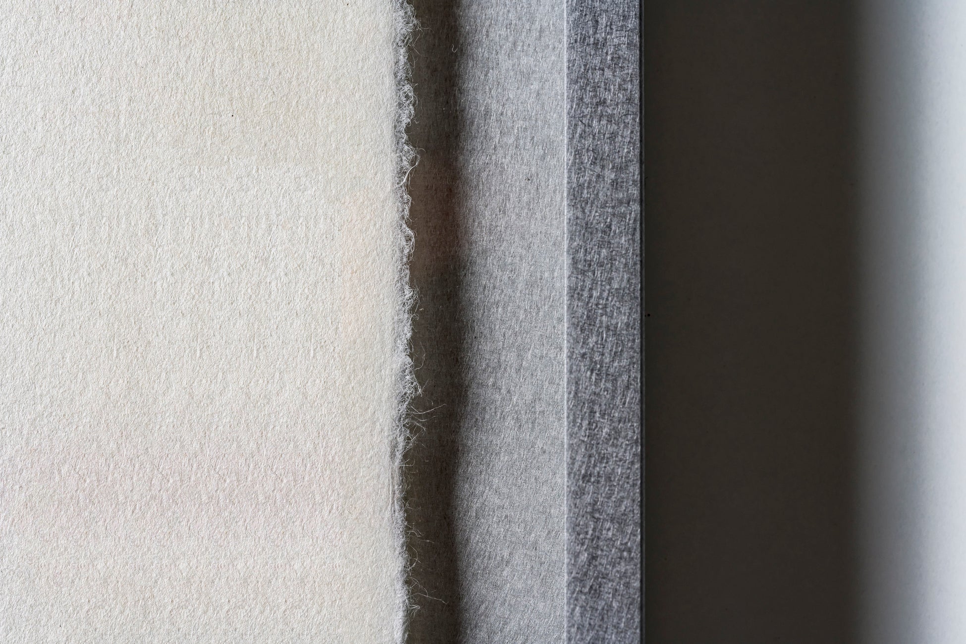 鳥取県、因州。豊かな大地が育てる原料に恵まれ、紙質を高める清流が流れる土地で1300年以上前から和紙が作られていた。その伝統ある因州和紙に、彫刻作品の高精細印刷を行なった。和紙の凹凸に印刷することで奥行き感が表現でき、因州和紙のにじみの少ない技法により顔料インクの定着や色合い表現の幅が広がる。印刷用には表面コーティングを行っている和紙が多い中、因州和紙は表面コーティング無しで高精細な印刷を実現しており、作品の経年変化の少なさや耐久性が保たれている。