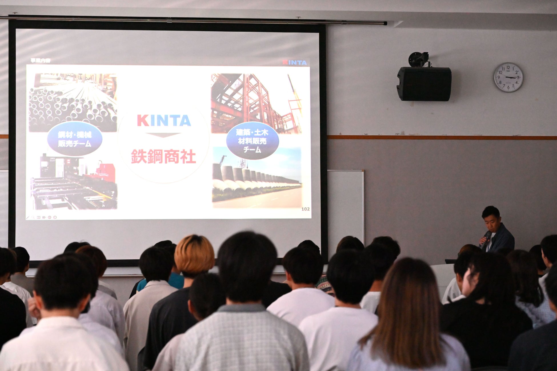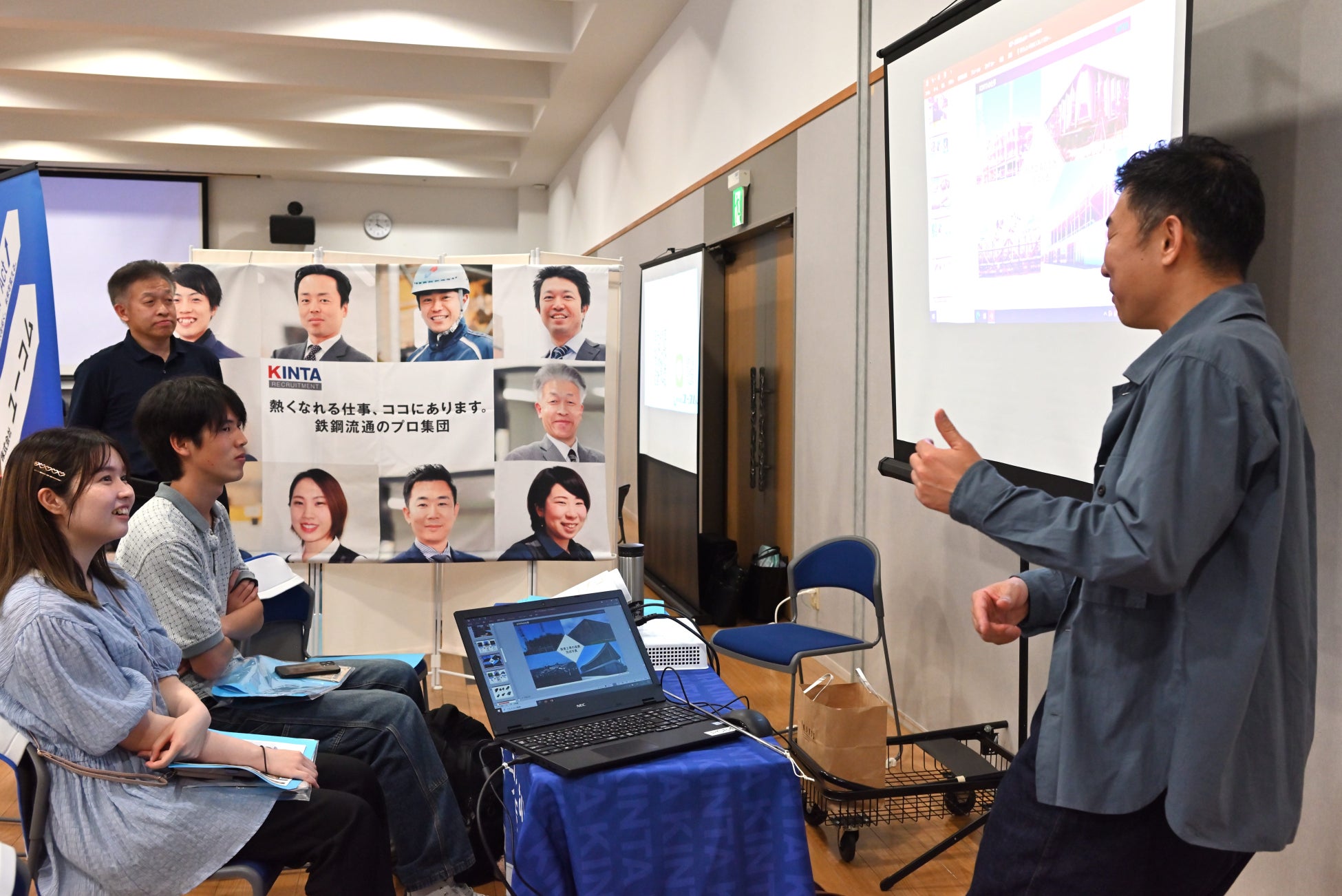 参加企業が順番に 3 分ずつプレゼンテーション。「興味ゼロだった業界が意外と面白いかも…!」「こんな業界あるんだ」「初めて聞いた企業だけど、働きやすそう」そんな新しい出会いを広げます。