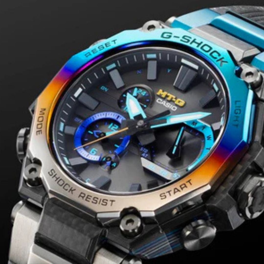 G-SHOCKの起源である樹脂素材とメタル素材を融合して、革新的な構造美を追求するMT-Gシリーズ。