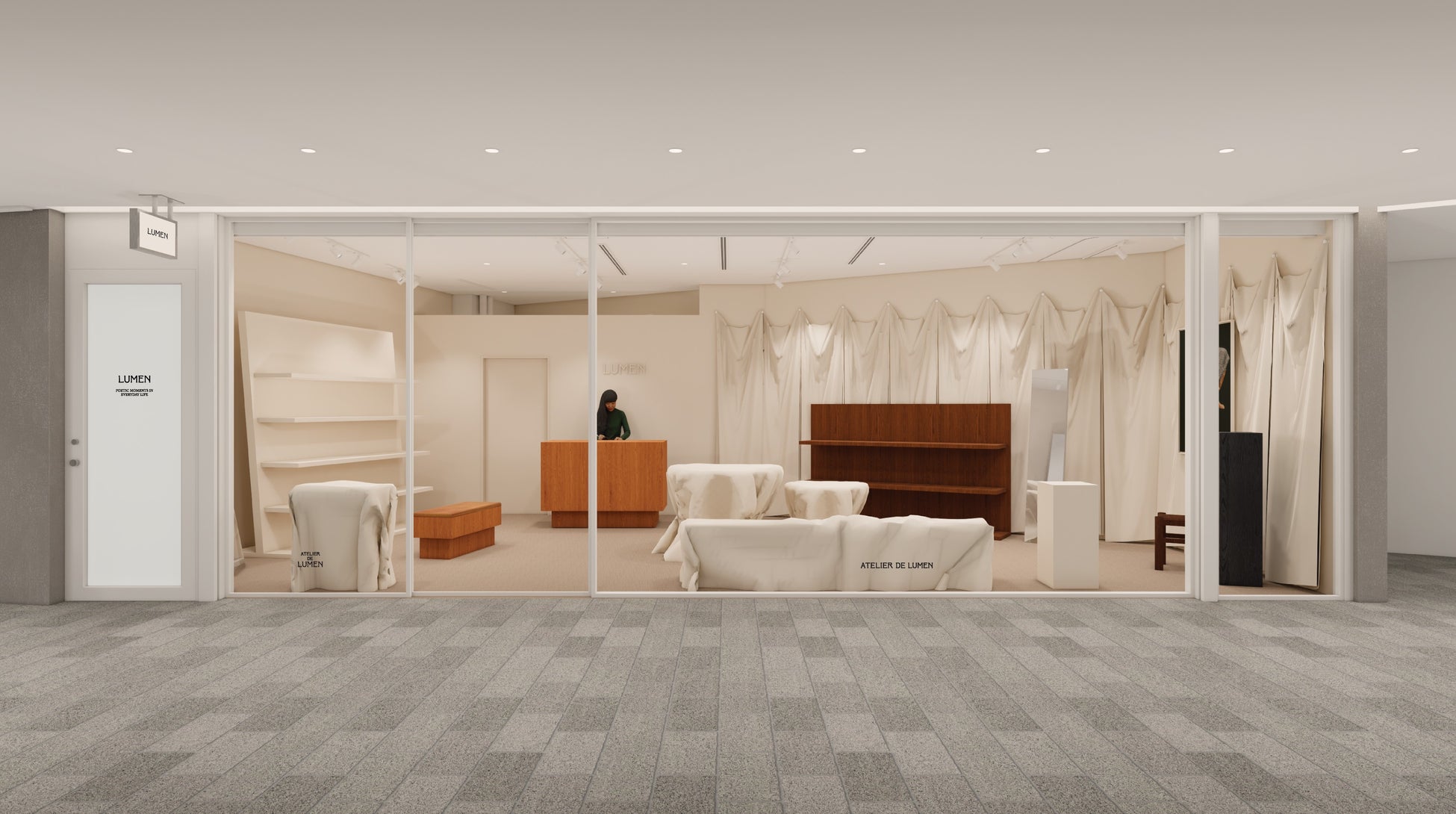 ルメンのアイデンティティを全面に打ち出した空間で、ブランドの哲学と価値を体験できるよう設計され、素材、生地、縫製など、ルメンの製品における重要な要素が、