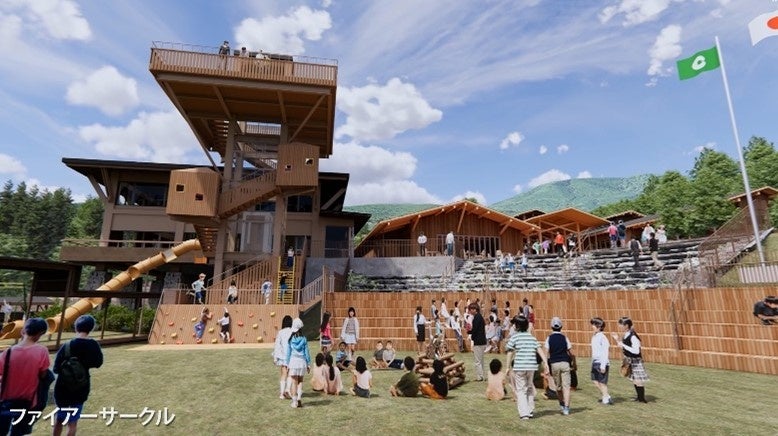 ス、大浴場、キャンプファイアーサークル、テントサイト、ワイルドタワーなど