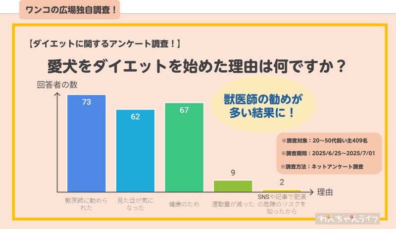 飼い主409名に「愛犬のダイエットを始めた理由」を調査すると下記結果になりました。