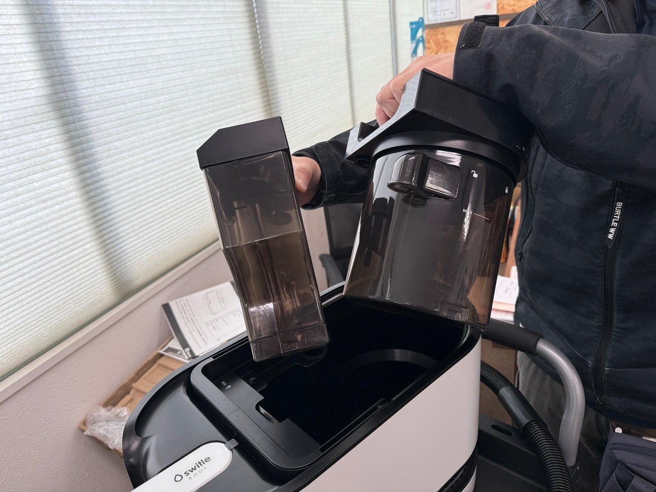 •水の循環システムを搭載 使った水を自動で回収するシステムを搭載し、周囲を濡らさず衛生的。