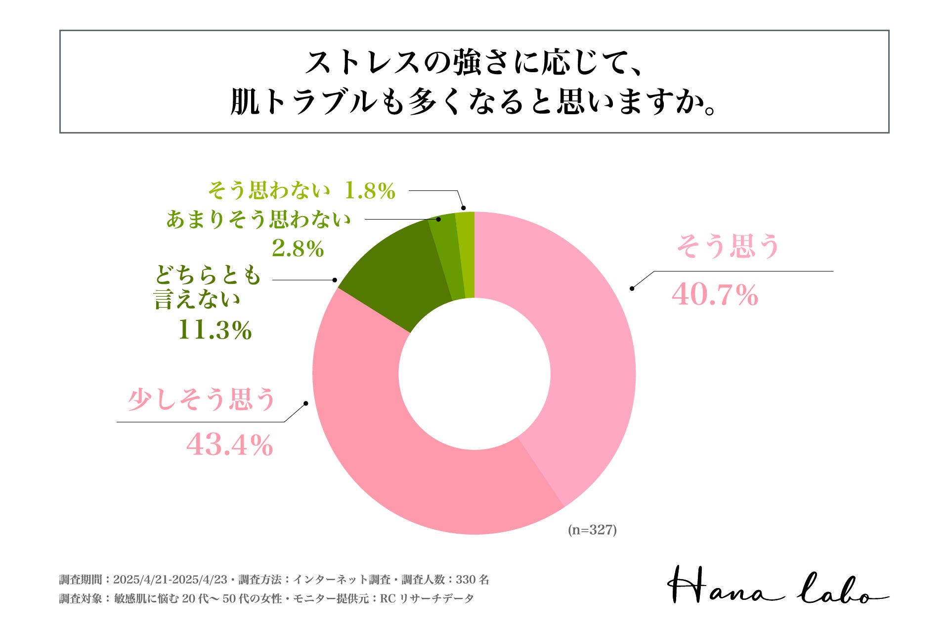 敏感肌に悩む20代~50代の女性の8割以上が、ストレスの強さに応じて、肌トラブルも多くなると考えている!株式会社HANA LABOが「ストレスと肌トラブルの関係性」に関する調査を実施!