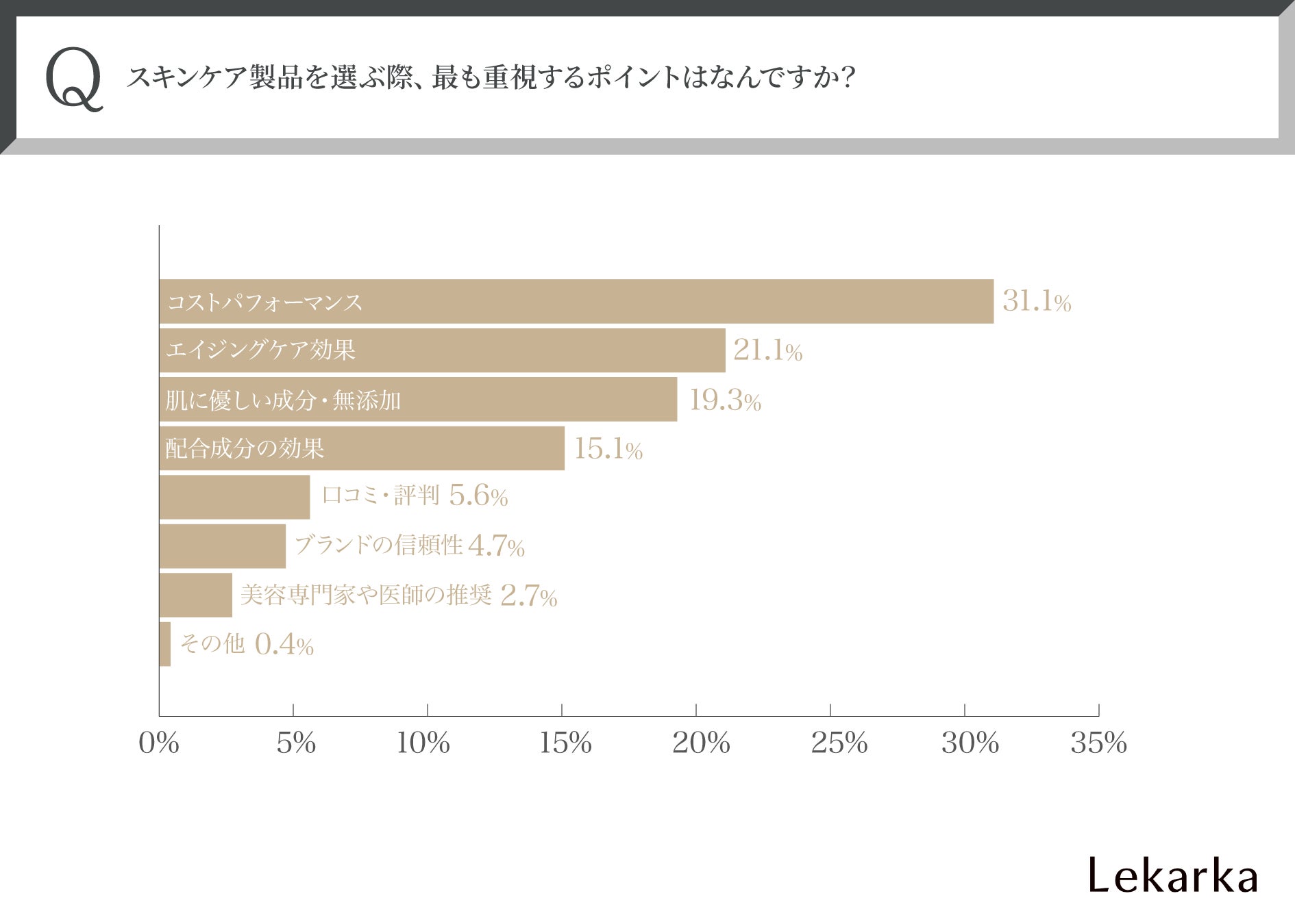 スキンケア製品を選ぶ際に重視するポイントは「コストパフォーマンス」(31.1%)