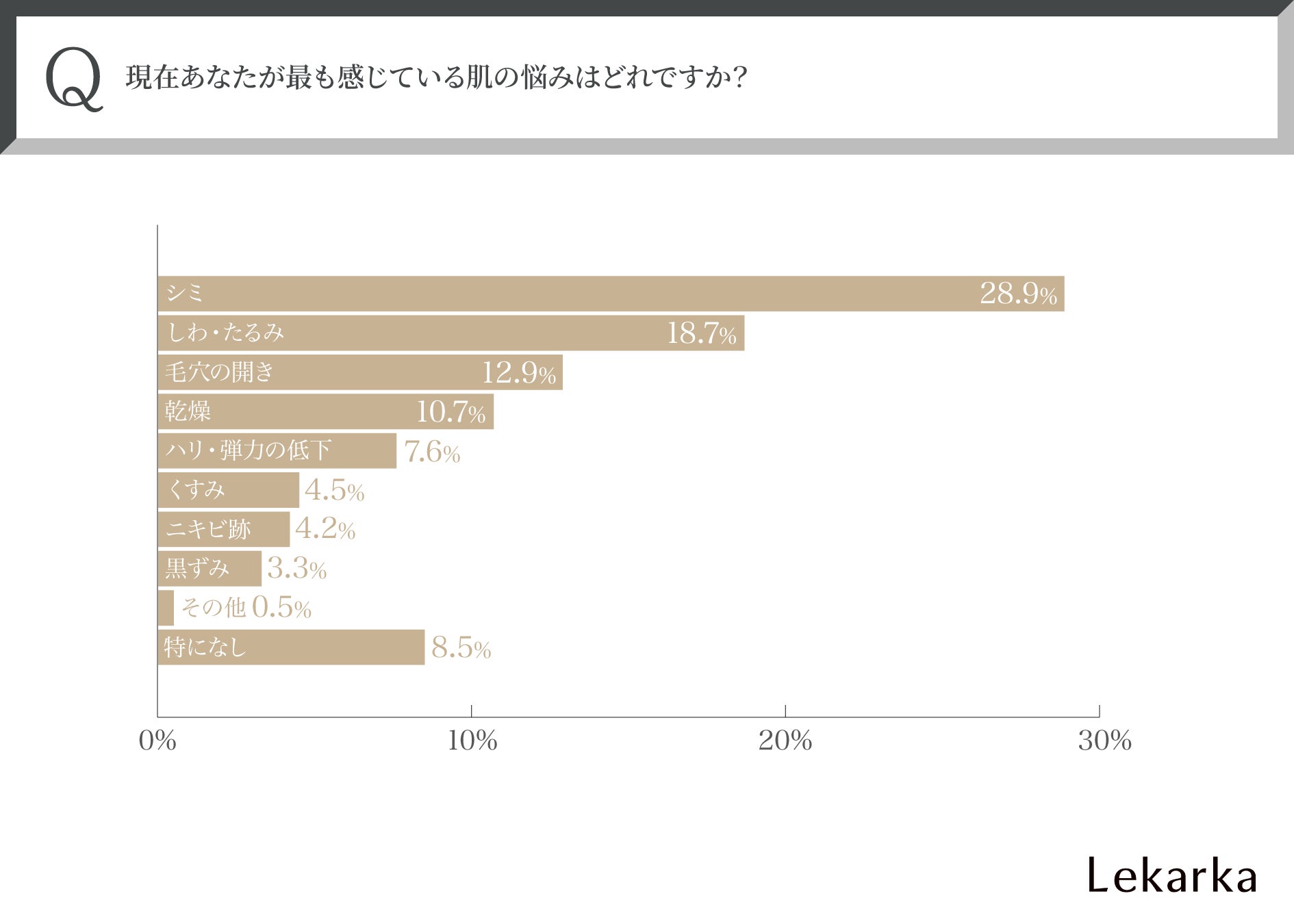 トップ3: ①シミ 28.9% ②しわ・たるみ 18.7% ③毛穴の開き 12.9%