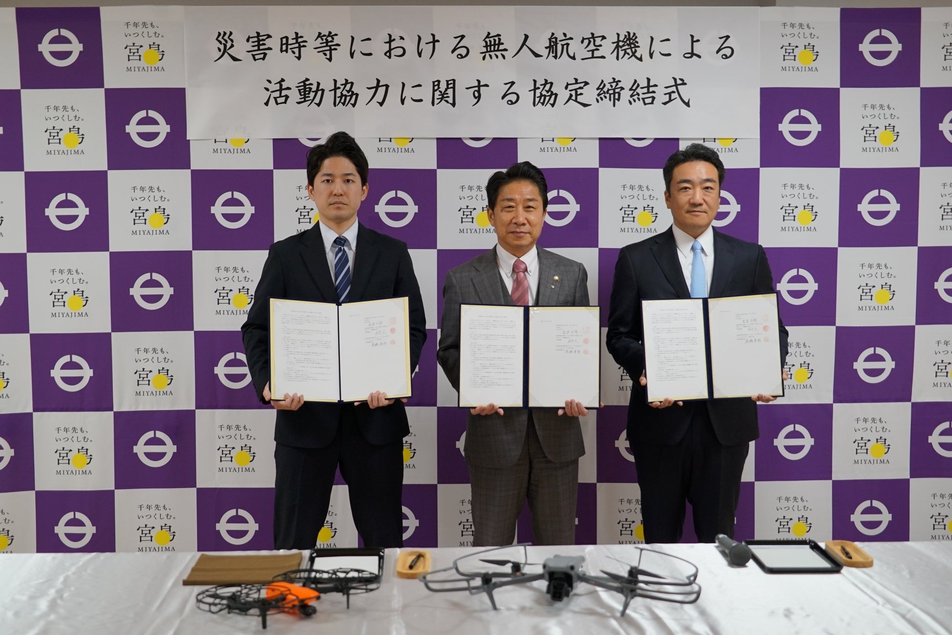 取り組みを進める中、平常時のみならず災害時において一定の条件での目視外飛行など、産業活用の幅をさらに拡げるべく、レベル3.5飛行による運用が可能な型式認証機とその操縦資格者を持つ体制を確立し、この度の協定締結に至りました。廿日市市の要請に基づき、操縦資格者の派遣やドローンを活用した訓練への協力や助言等を行うとともに、災害情報の収集と提供、および孤立地域等への物資の輸送に関する協力を行います。