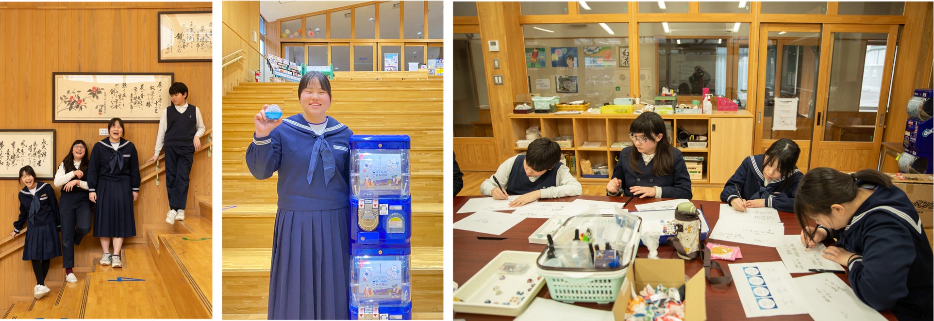石川県珠洲市立大谷小中学校は、石川県の能登半島最北端にある義務教育学校。能登半島地震を経て、全校児童生徒が5名になりました。「珠洲市の復興のために自分たちにできることがしたい」と児童生徒が自ら立ち上がり、「多くの人々に 大谷地区の魅力を伝えるため、大谷地区でしか作れない商品をガチャガチャに入れて販売し、その収益を寄付する」という仕組みを考えました。昨年の能登半島豪雨を経て10月から、第1弾の販売を開始。石川県内、首都圏や東北で販売を行い、販売を予定していた500個は即完売になりました。大谷小中学校では3月に卒業生1名を送り出し、全校児童生徒は4名になりましたが、新9年生を筆頭に第2弾を企画し、いよいよ販売を開始します。