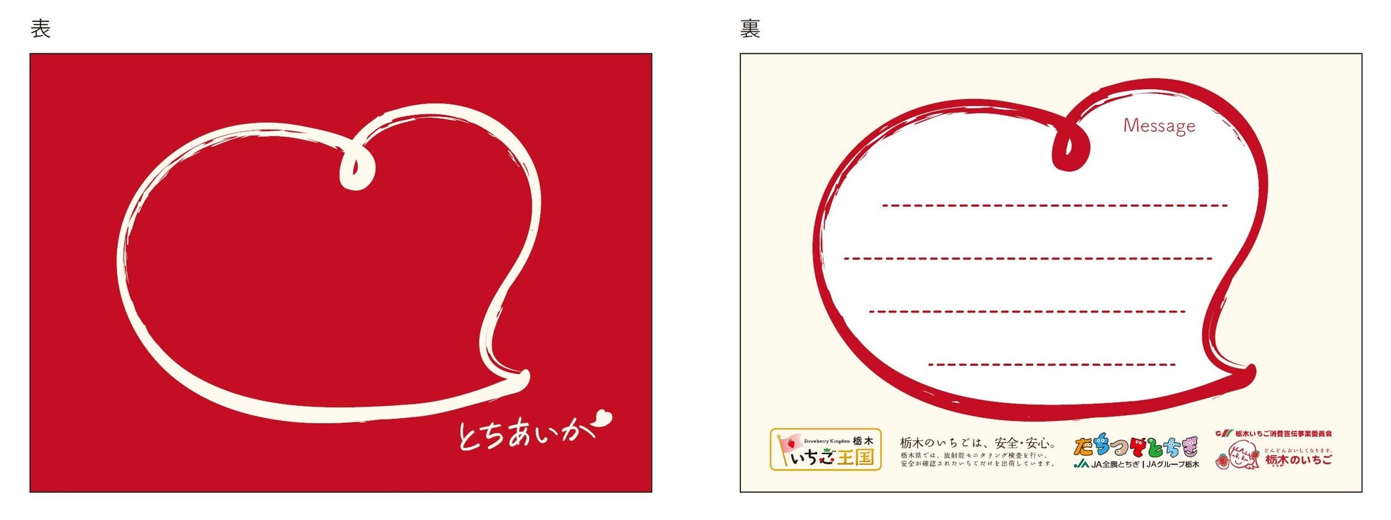 とちあいかの「ハート」形をモチーフにしたメッセージカードをお配りします。日頃の感謝を込めて、ハート型のとちあいかとともに、大切な人へ“愛”を伝えてみませんか。※なくなり次第終了