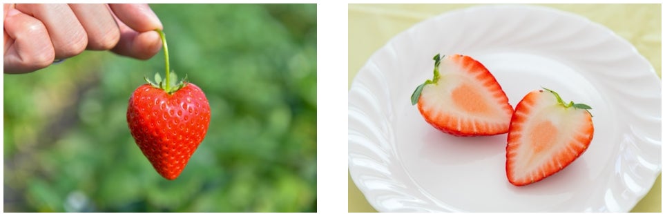 「とちあいか」(品種名:栃木137号)は2018年に開発された栃木県のオリジナル品種です。酸味が少なく甘さが強いのが特徴で、そのまま食べても、ケーキなどのスイーツに添えても美味しく、大きさはとちおとめとスカイベリーの中間くらい。縦に切ると、断面がハート型に見える味も見た目も幸せいっぱいのいちごです。いちごの品種開発は数年かけて行います。「とちあいか」の場合、大粒で甘く、収穫期間が長くて病気に強いという特性を持つ系統を選抜してきました。とちおとめに代わる、栃木県を代表するいちごとして人気上昇中です。