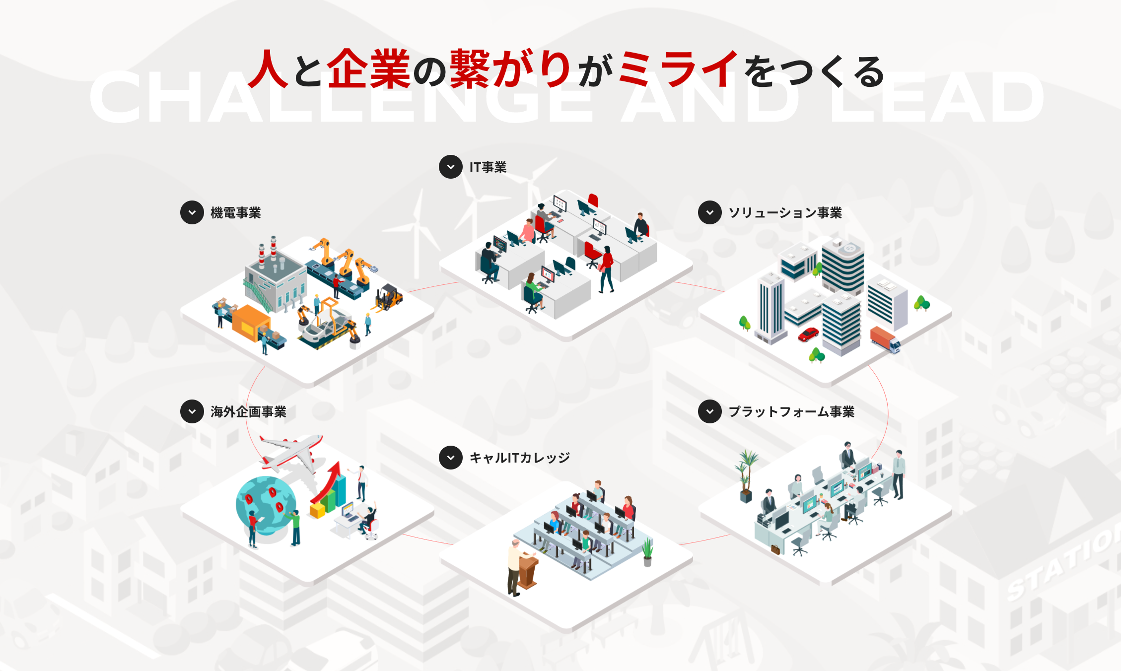 これまで長きに渡り培ってきた、IT分野のノウハウを活かし、挑戦的な企業活動で急成長を続けるキャル。IT業界で幅広い対応力を発揮できる会社を目指します。
