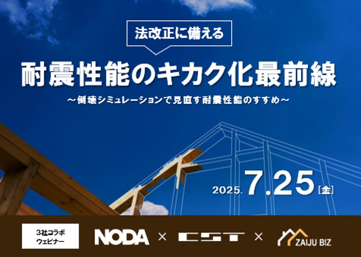 株式会社ノダ(本社:東京都台東区浅草橋、代表取締役社長:野田 励)は、確認検査機関・素材メーカー・ソフトウェア会社など、業界の枠を超えた企業と連携し、建築事業者様向けの無料オンライン合同セミナーをシリーズ開催します。法改正で加速する省エネ・構造性能の高度化や業務DXなど、現場ニーズの高いテーマを継続的にお届けしてまいります。