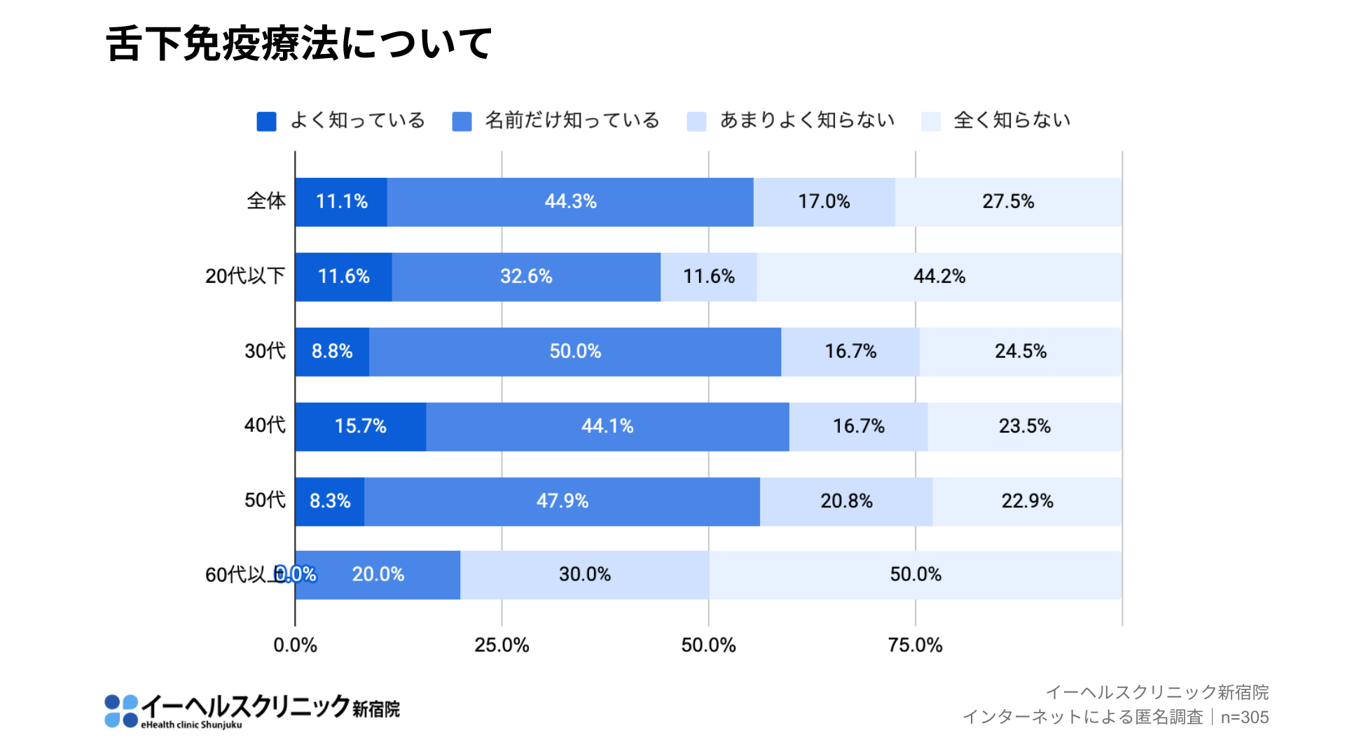 初期療法の重要性について、50代以下の世代では半数以上が「知っている」と回答しました。一方で、60代以上で「知っている」と回答したのは40.0%で、世代間でも認知の差があることがわかりました。