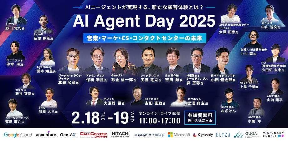 生成AI技術を活用したAIエージェントによる社会実装を推進し、顧客体験(CX)の変革を目指す一般社団法人AICX(AI Customer Experience)協会(東京都、代表理事:小栗伸、小澤健祐、以下、AICX協会)は、国内初のAIエージェントをテーマにしたオンラインカンファレンス「AI Agent Day 2025」の追加参加枠の受付を開始いたします。