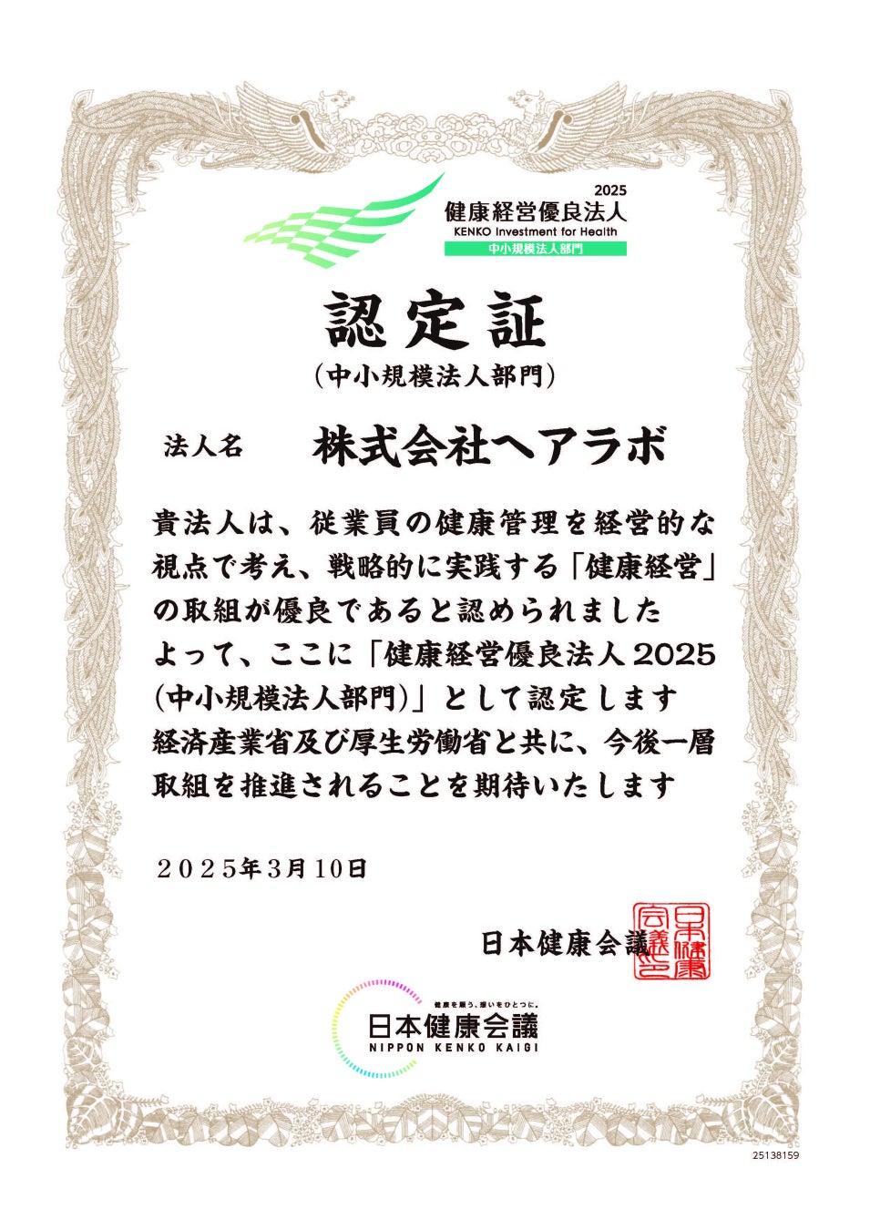 株式会社ヘアラボ、経産省&日本健康会議による「健康経営優良法人(中小規模法人部門)」に初認定!持続可能な職場環境の構築に取り組みます