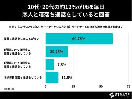 尚、調査メディア「STRATE」のアンケートによると、10代・20代の約4割が就寝時に寝落ち通話をしているという調査結果が出ています。(出典元:https://strate.biz/news/falling-asleep-call/)
