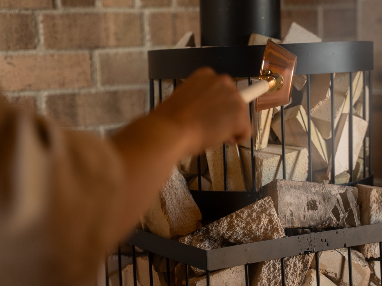 フランス産白煉瓦へのセルフロウリュでお好みの湿度をお楽しみいただけます。