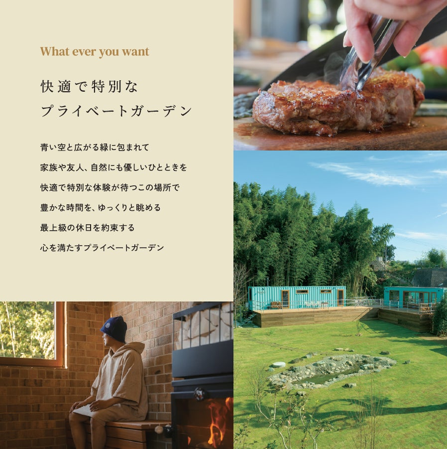 時間を気にせず、周りの目を気にせず、自分たちだけのアウトドアリゾート体験が可能です。