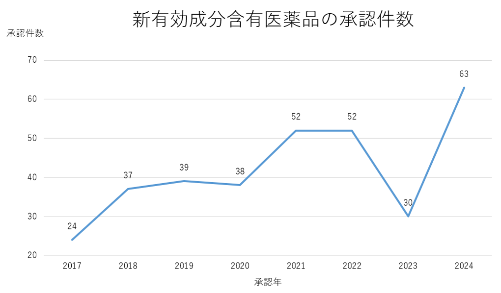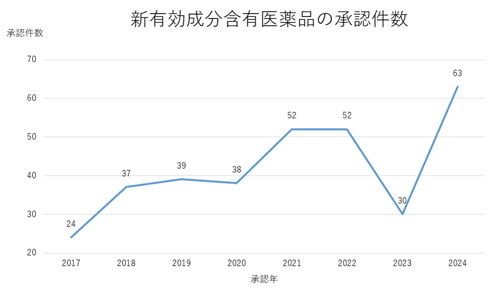 出典:医薬産業政策研究所作成「日米欧の新薬承認状況の比較(2024年)」に掲載の資料より当社で作成