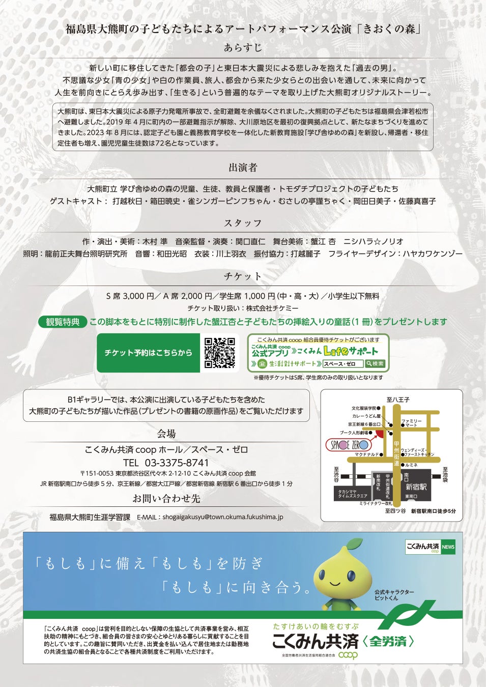 主催は福島県大熊町、共催はこくみん共済 coopで、1日限りの本格的な演劇がスペース・ゼロで開催されます。