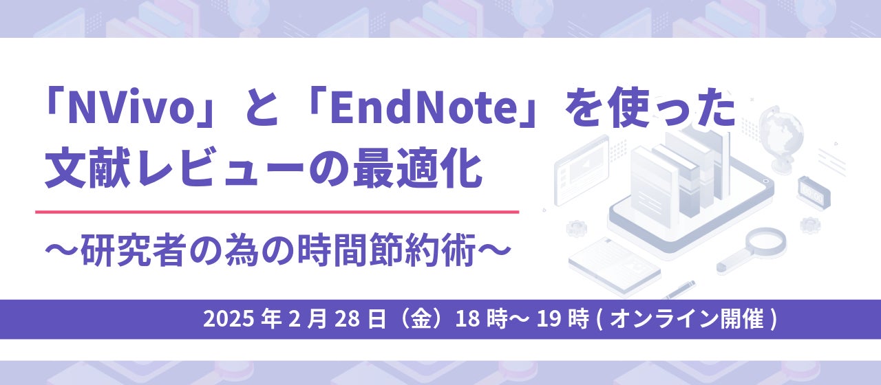 『「NVivo」と「EndNote」を使った文献レビューの最適化 ~研究者の為の時間節約術~』-ユサコ株式会社主催、2025年2月28日(金)18時より開催