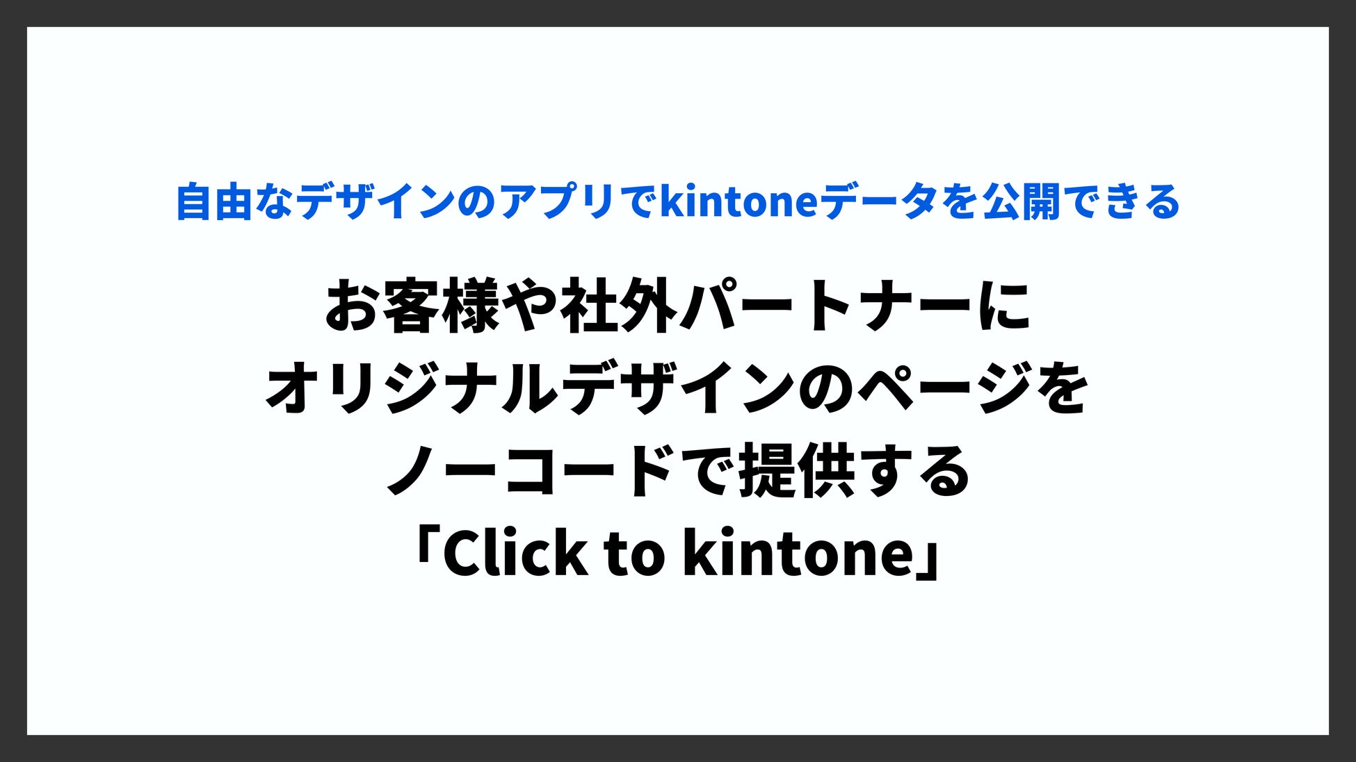「Click to kintone」は、kintoneのデータを社外でも活用できるようにするためのサービスです。kintoneのデータは基本的には社内利用を想定されていますが、「Click to kintone」を使うことで、お客様やビジネスパートナーにも必要な情報を安全に提供できます。