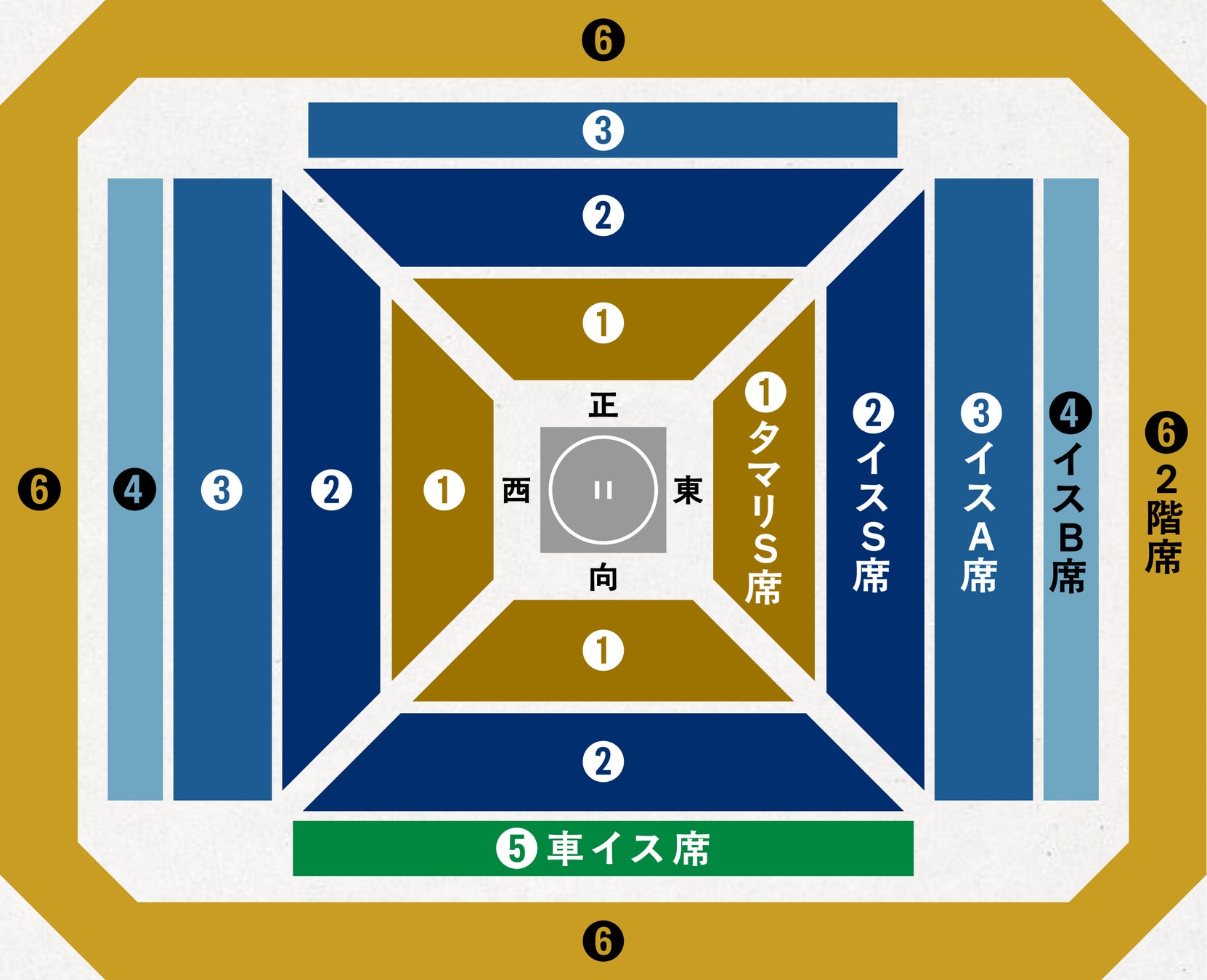 タマリ席に次いで土俵が見やすい人気エリアです。土俵全体をしっかり見渡せるバランスの良い座席で、観戦初心者の方にもおすすめです。