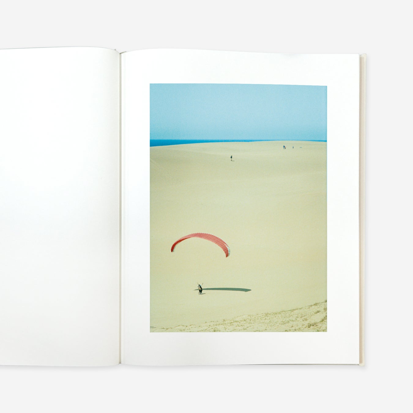 鳥取の砂丘を訪れた。そこはずっと行ってみたかった場所だった。到着してすぐに砂の上を歩き始めた。しばらく歩いていると遠くに人影が見える。何をしているのだろうと眺めていると、赤と白の大きな翼が広がり、人がふわりと宙に浮いた。そして静かに地上に着地した。それはあっという間の出来事で、気づいた時には消えている虹を見ているようだった。――野口里佳
