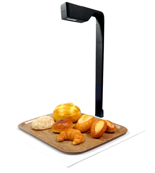 商品登録は、お客様がパンを乗せたトレーをスキャンするだけ