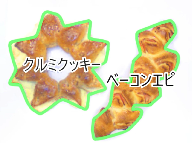 トレイ上でパンが密集した状態や複雑な形状でも、一つ一つのパンを正しく認識します。