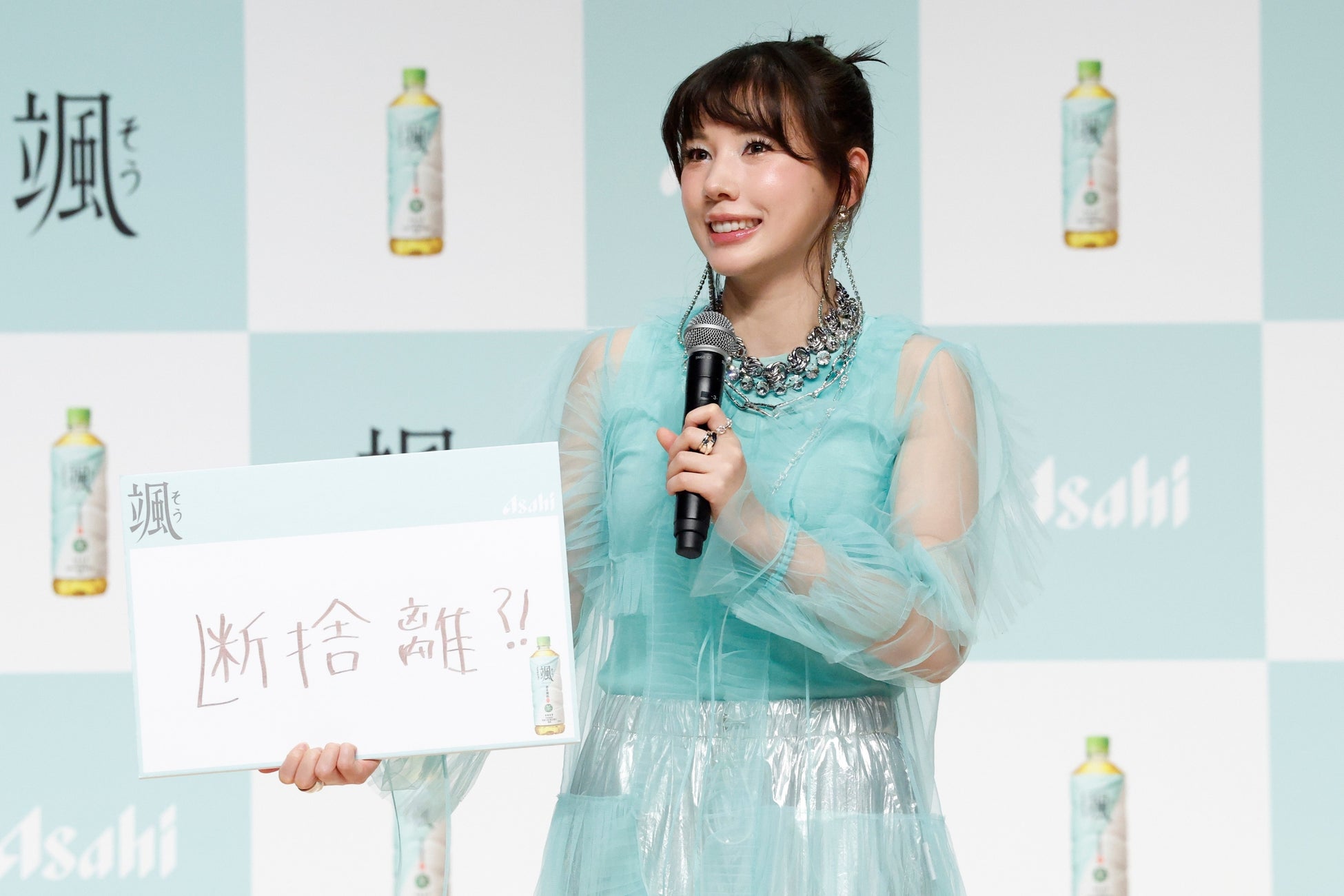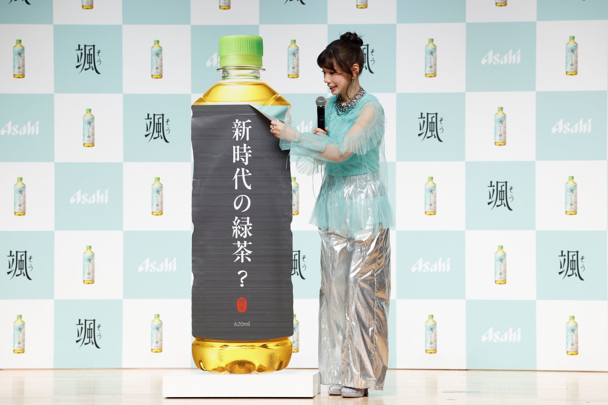 仲里依紗さん、登壇!巨大ボトルをアンベール!新時代の緑茶 『アサヒ 颯』 新CM発表会 開催