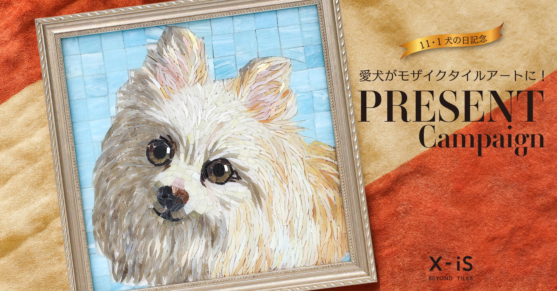 2025年10月29日(水)より、SNS(XとInstagram)を通じて愛犬家から愛犬の写真を募集し、その写真をもとに世界に一つだけの「オリジナル・モザイクタイルアート」を製作し、プレゼントいたします。大切な愛犬との思い出を、半永久的に残るタイルアートでお届けします。