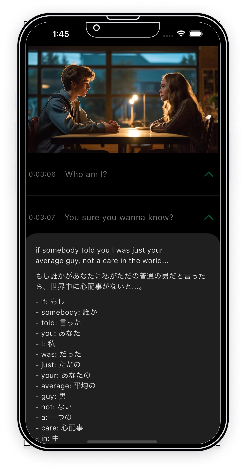 特に英語学習にフォーカスしたこのアプリは、英語字幕の表示、AIによる日本語訳、英単語の辞書機能など、豊富な機能を提供します。